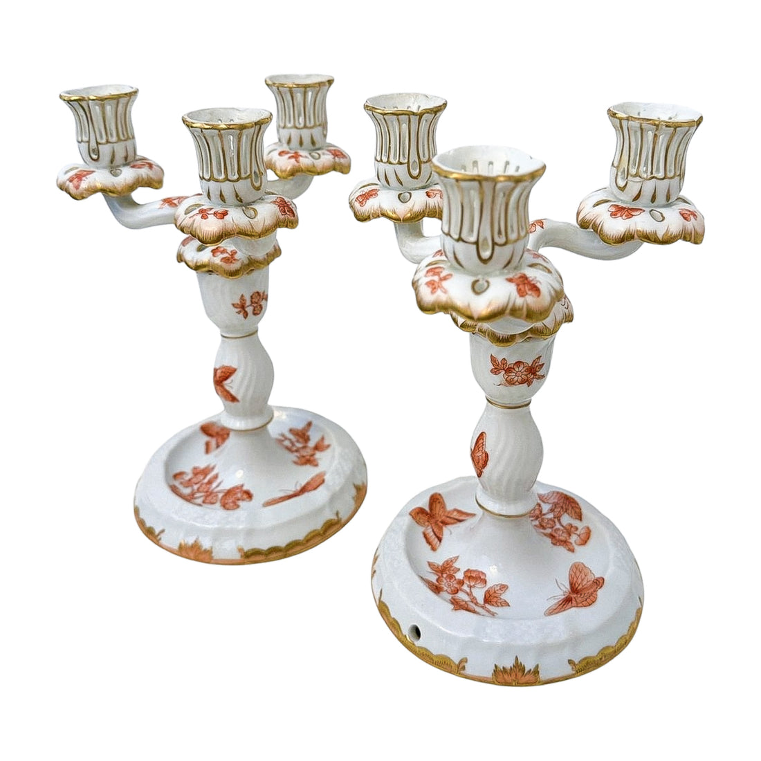 Herend Chinese Bouquet Rust — Candelabra Pair