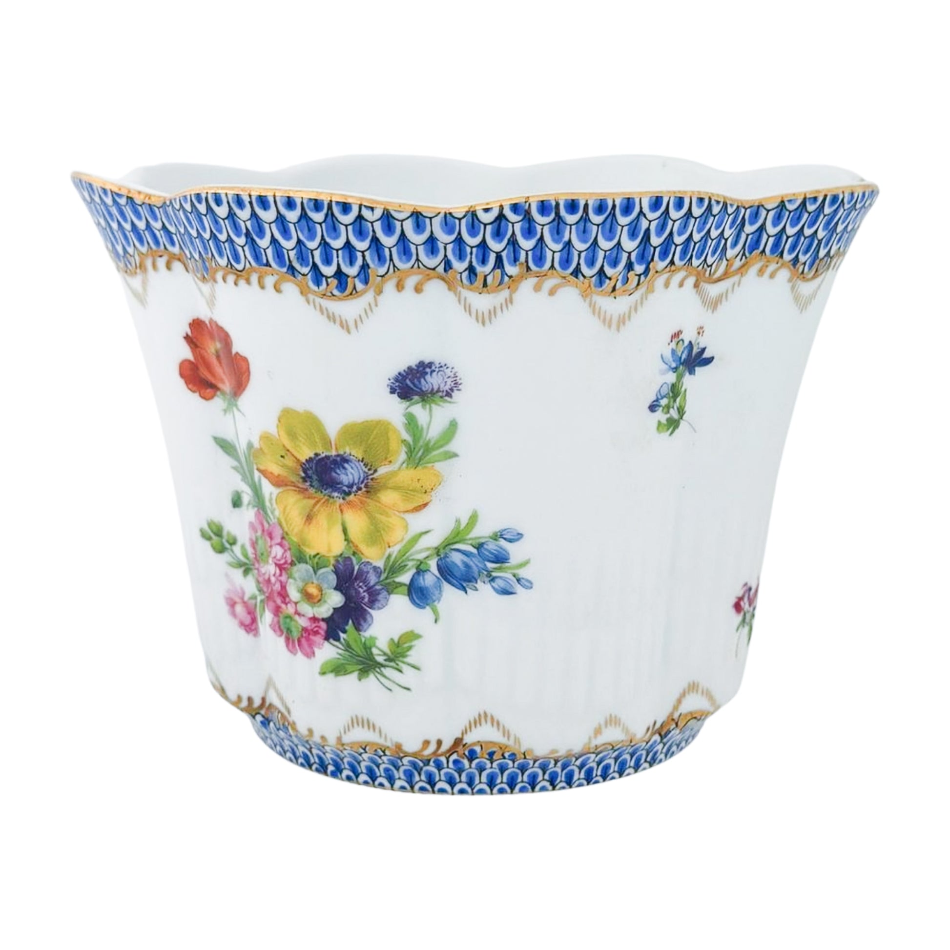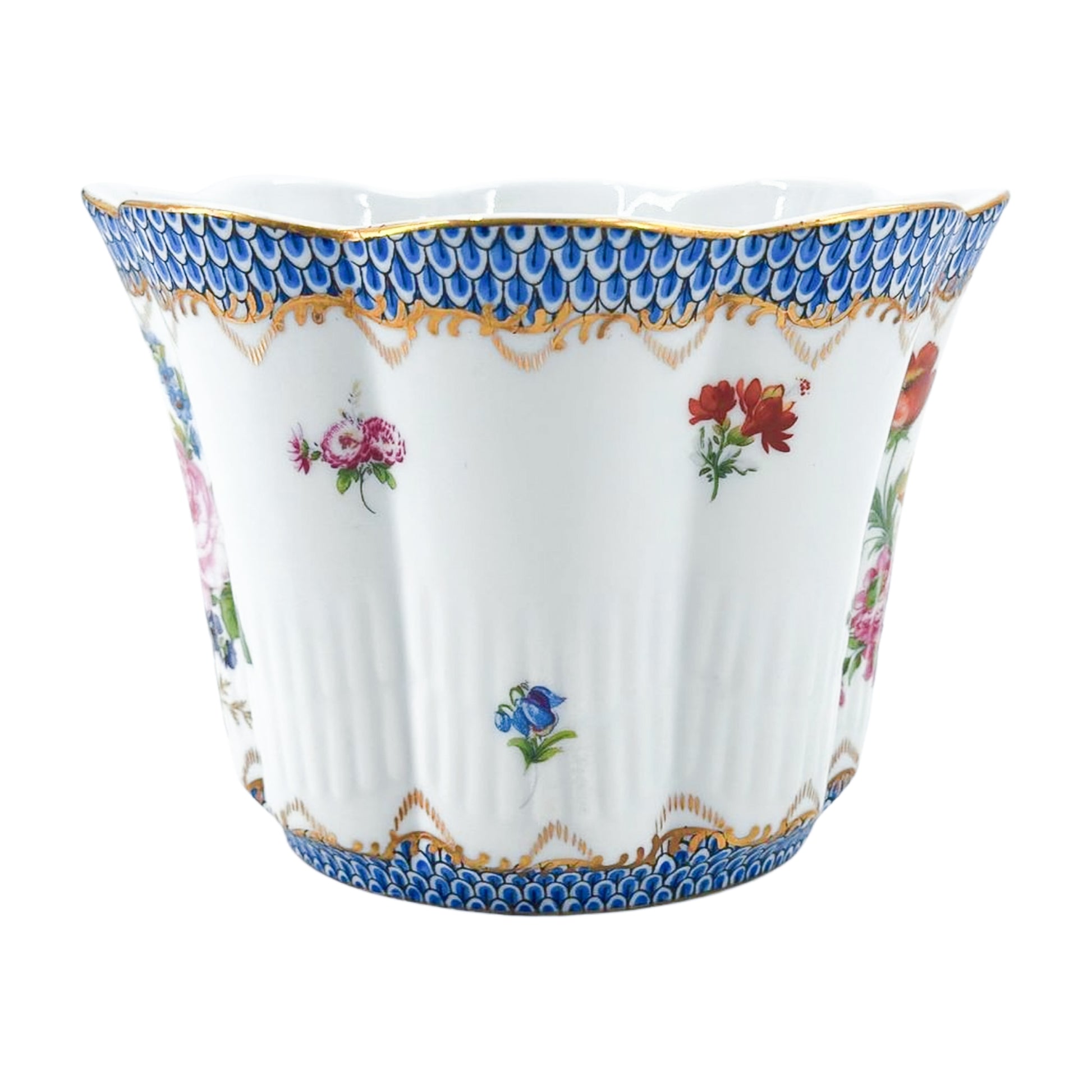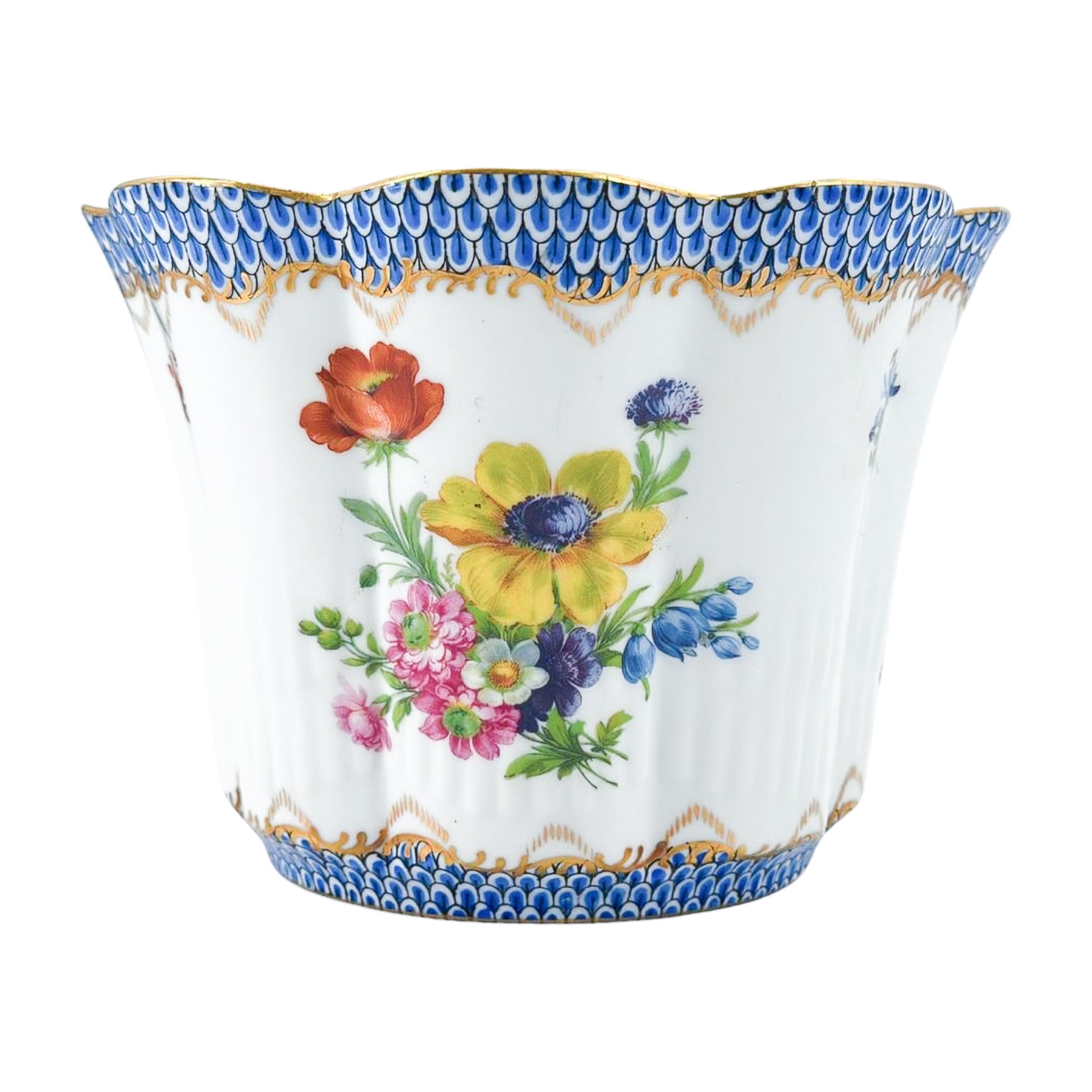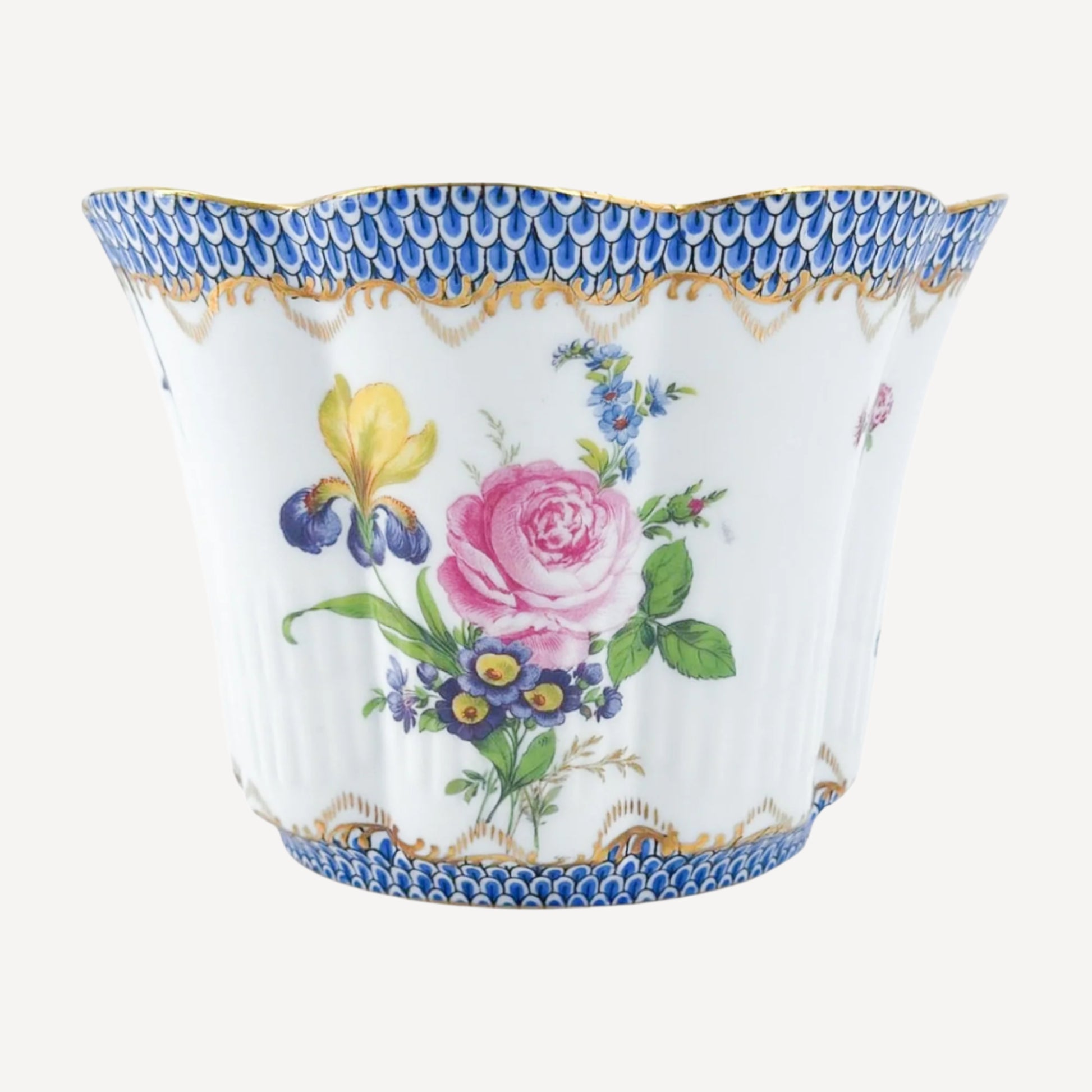 This one's a scene-stealer. Hand-painted florals bloom across crisp white porcelain, framed by a scalloped rim and a richly patterned border. It’s a classic Andrea by Sadek piece—elegant, collectible, and giving Herend with a wink. Use it as a cachepot, centerpiece, or just a not-so-subtle flex of your porcelain taste.