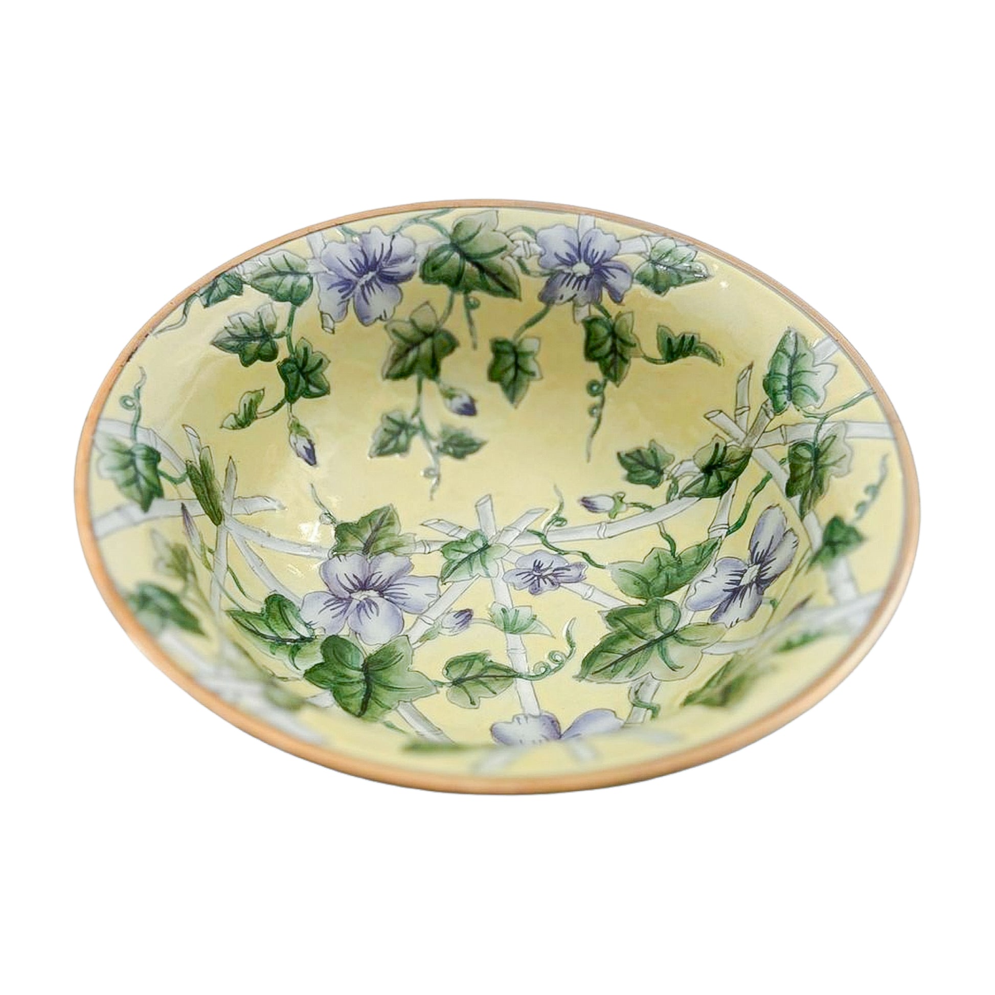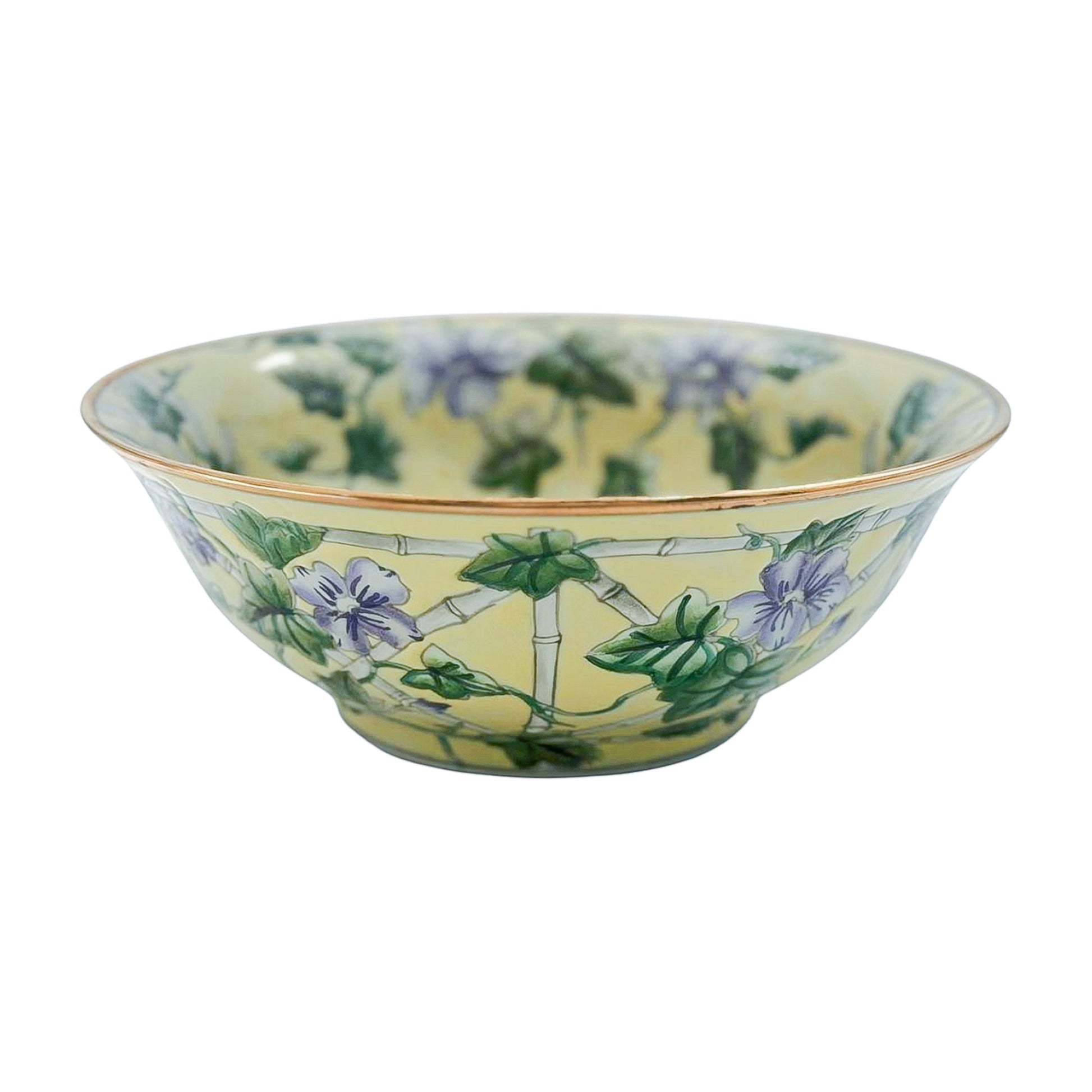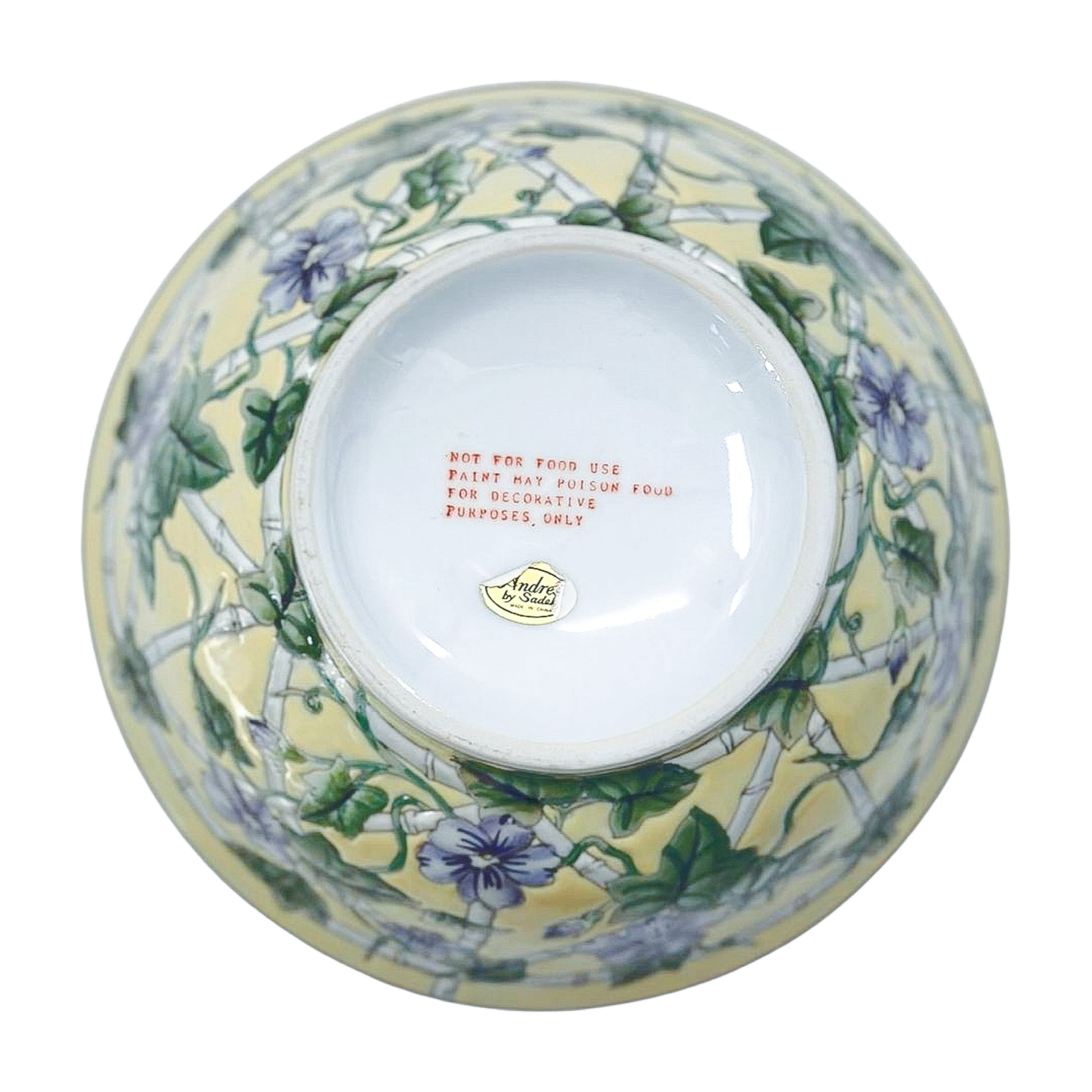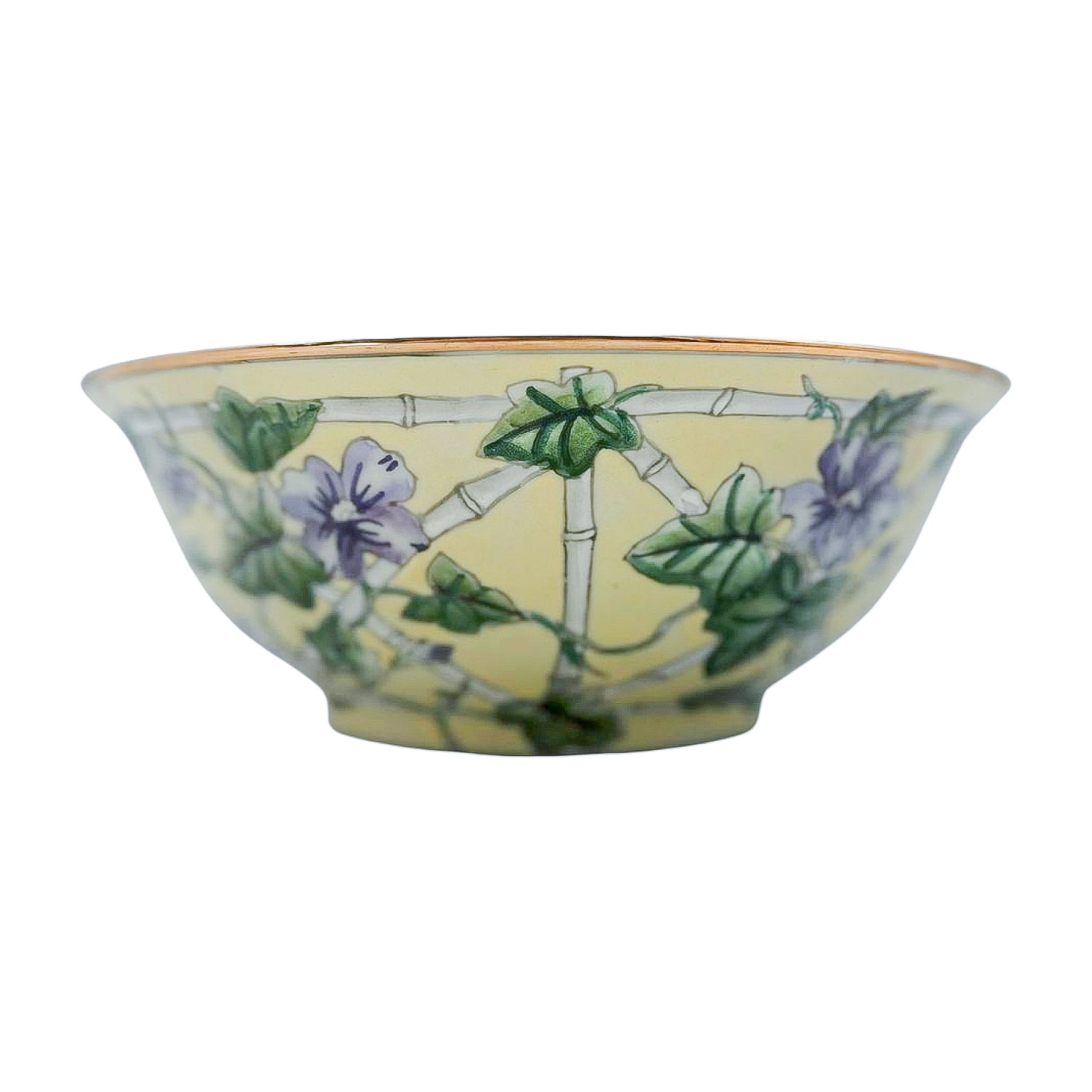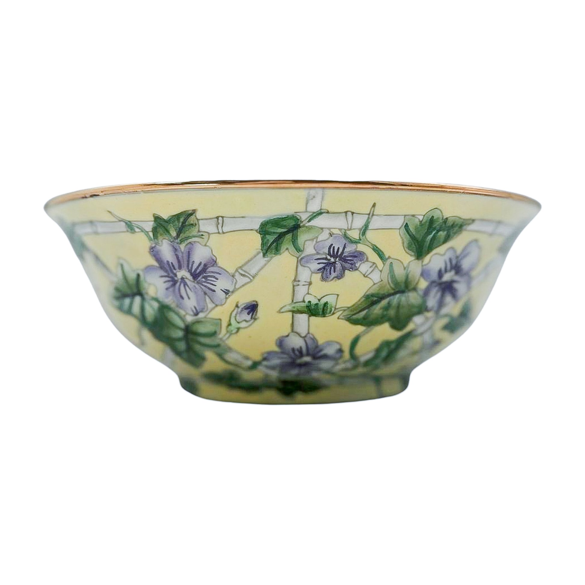 A floral moment in full bloom. This vintage Andrea by Sadek bowl is hand-painted in soft yellow and violet, with vines climbing a trellis in perfect English garden style. Finished with a gilt rim and subtle nod to Herend, it’s equal parts charm and collectibility.
