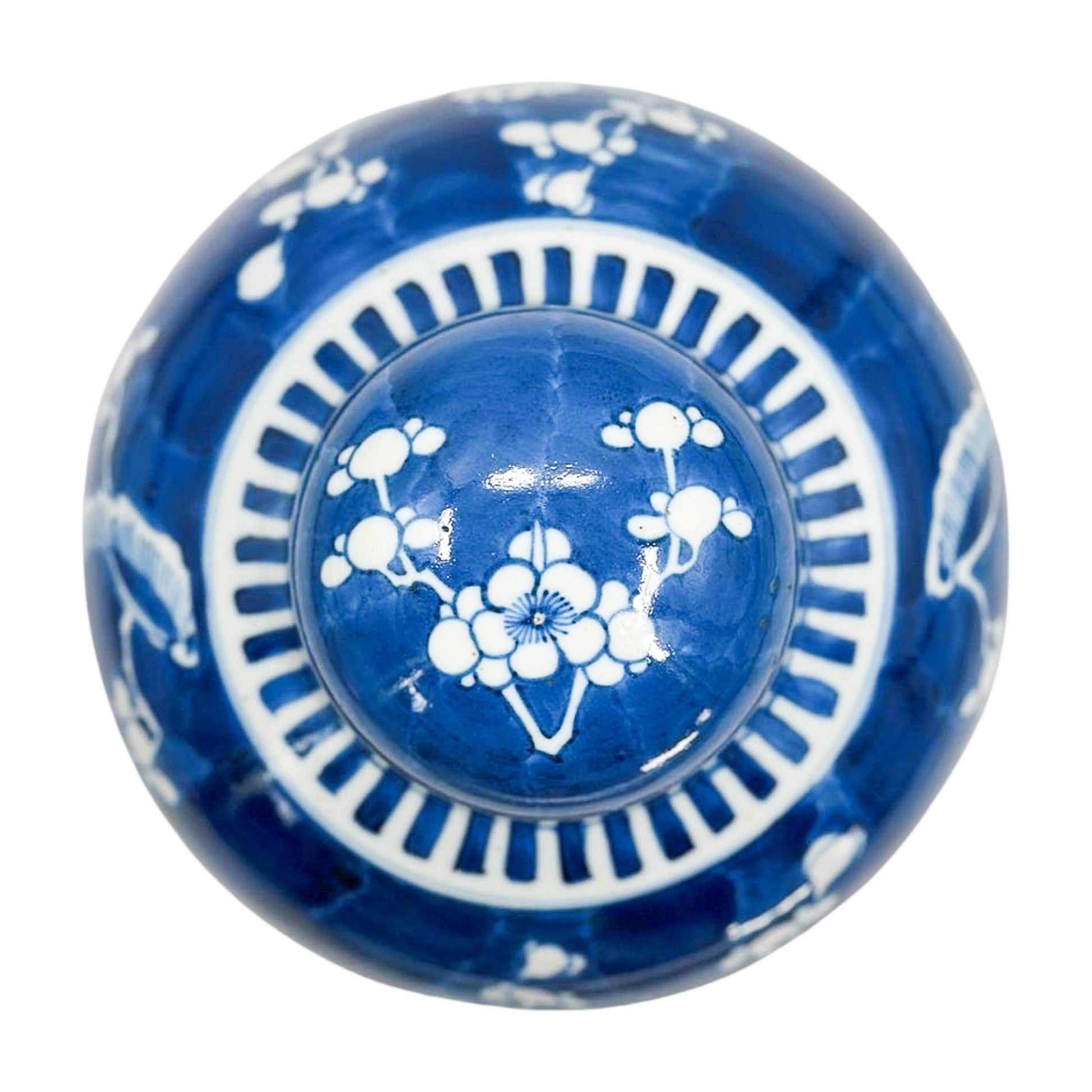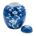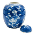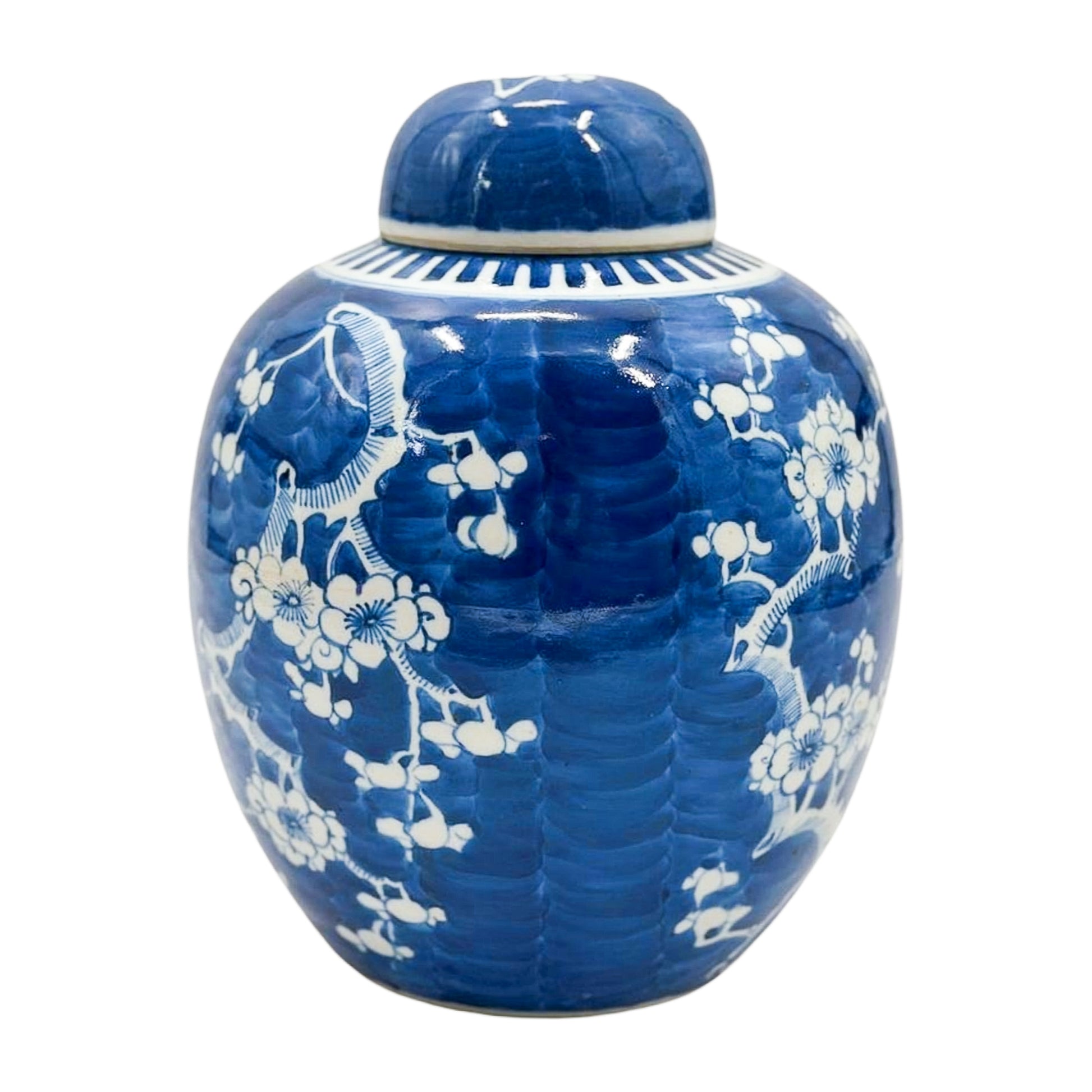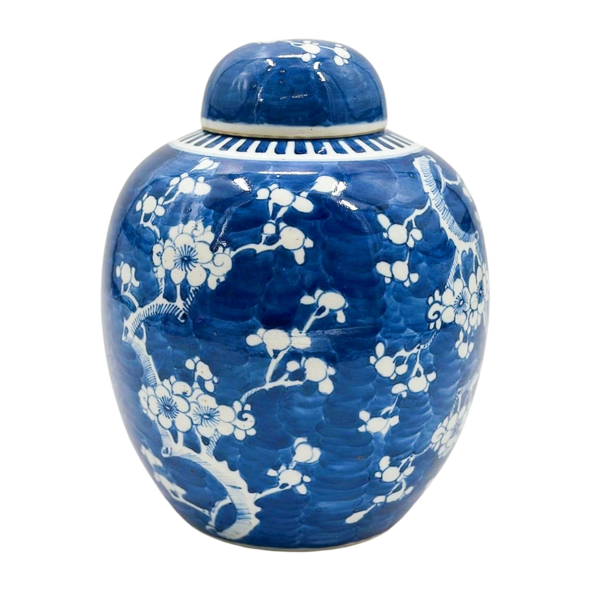 A classic form with real presence. This hand-painted ginger jar features white cherry blossoms set against deep cobalt, with a brushy, layered finish that gives it movement and depth. The traditional silhouette feels anything but stiff—there’s an ease to it that makes it work in rooms both tailored and relaxed.