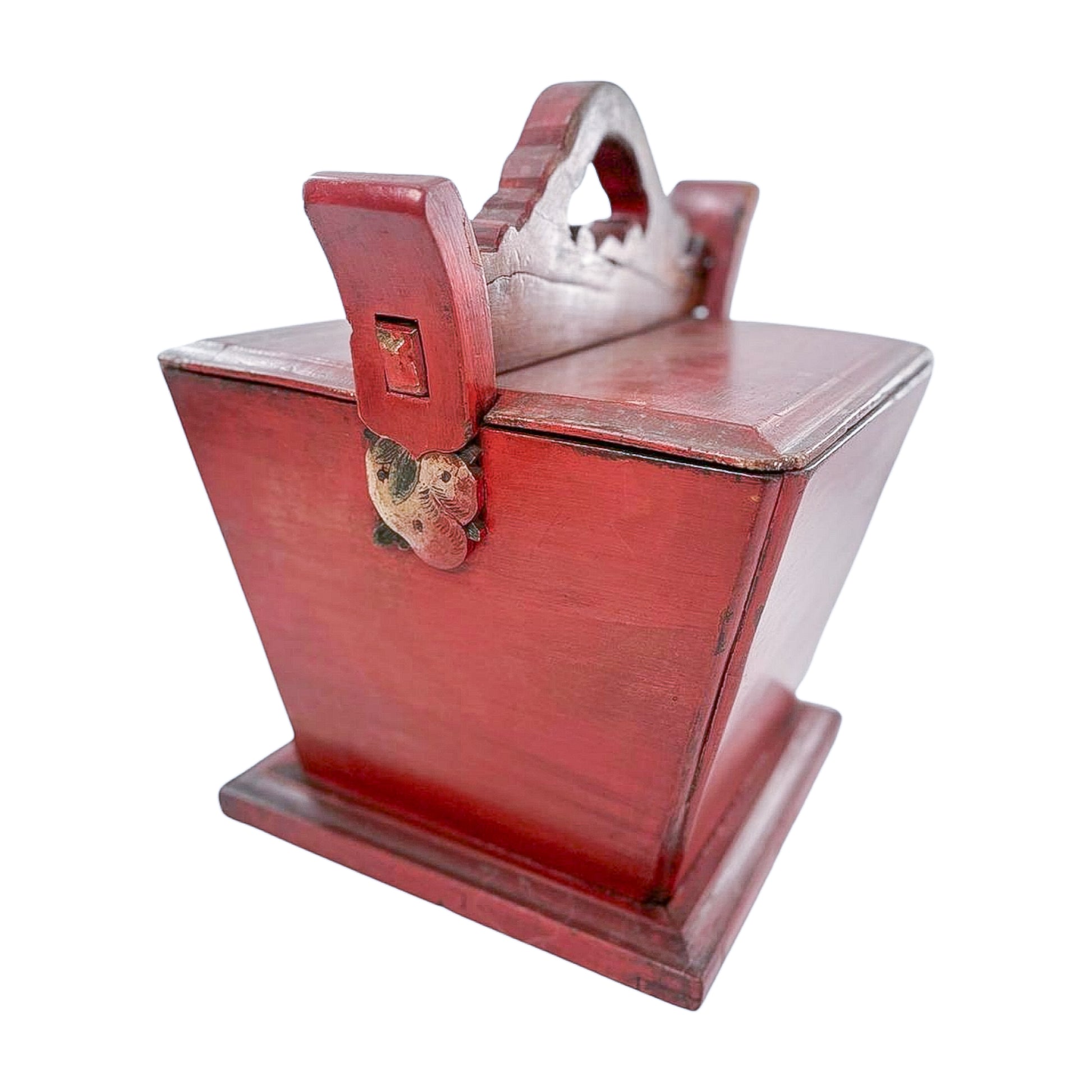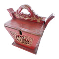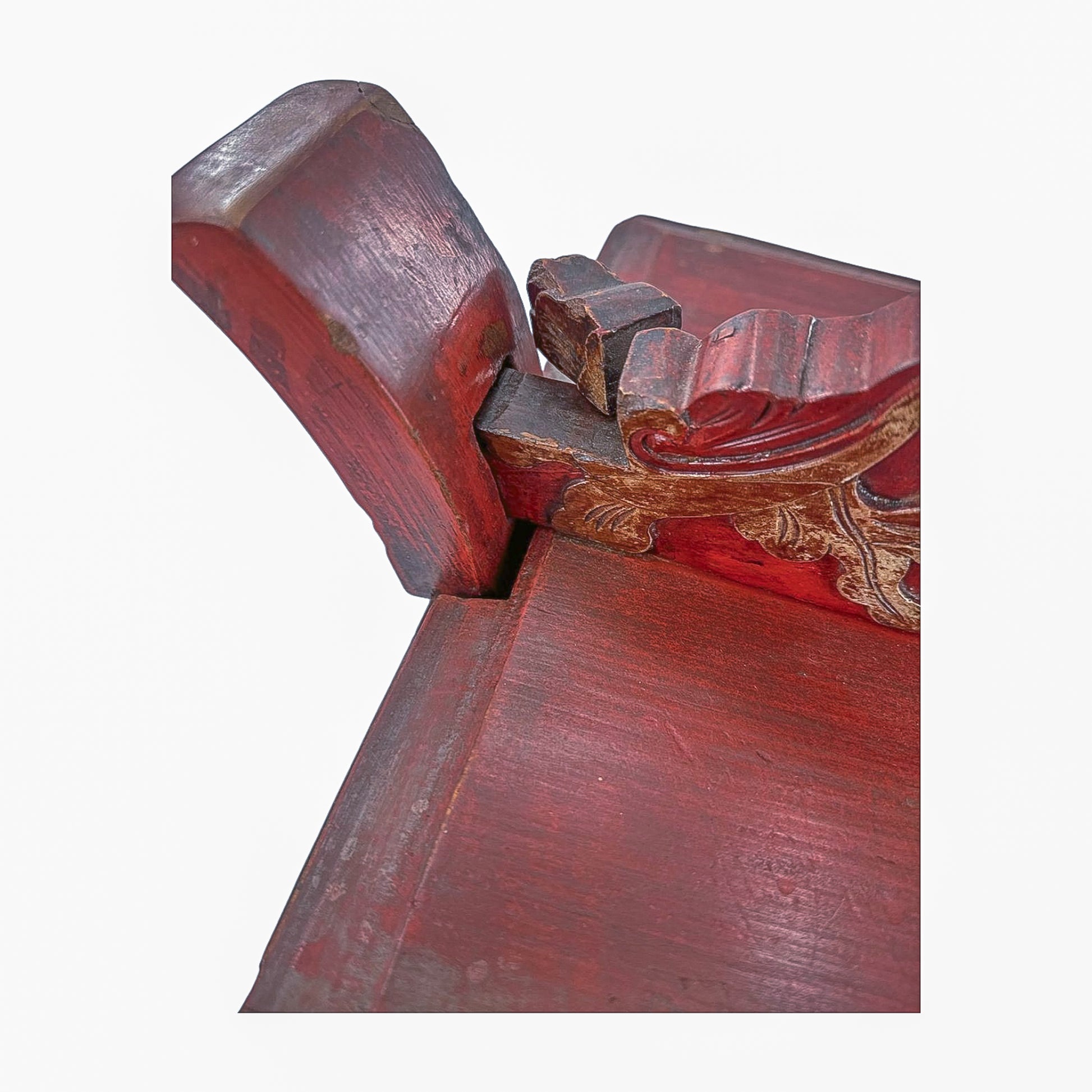 Equal parts sculptural and storied, this red lacquer tea caddy is steeped (yes, we went there) in tradition. The front features hand-carved detailing—an intricate vignette of garden life, complete with blossoms and elegantly dressed figures—set against a smooth lacquered body. The form is architectural, the presence undeniable. Less an accent. More an anchor.