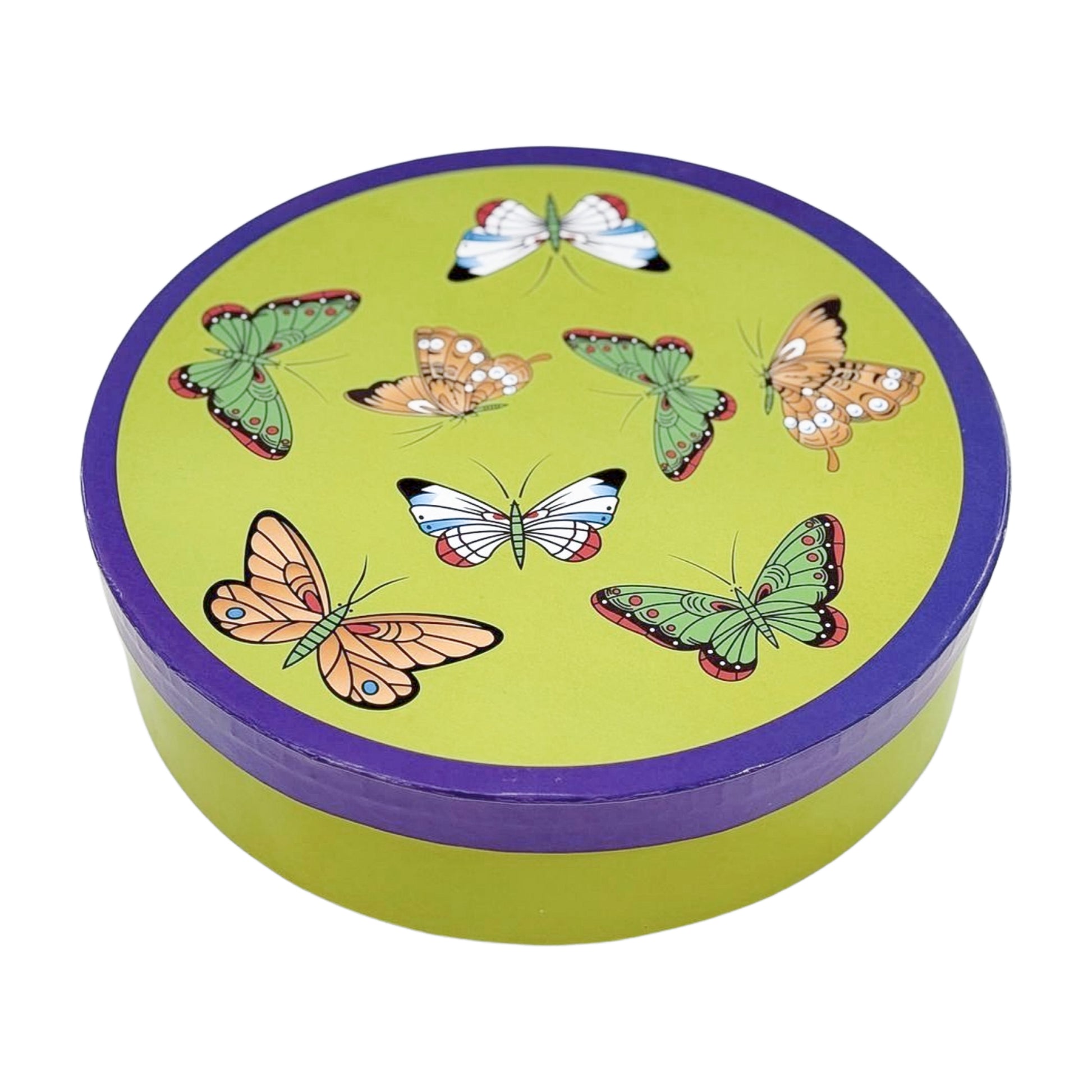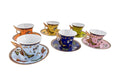 A full-spectrum moment. This boxed set of six espresso cups and saucers features vivid butterfly motifs and color-drenched backgrounds—each trimmed in gold with sculptural winged handles. It’s exuberant, yes, but with enough detail and restraint to hold its ground.