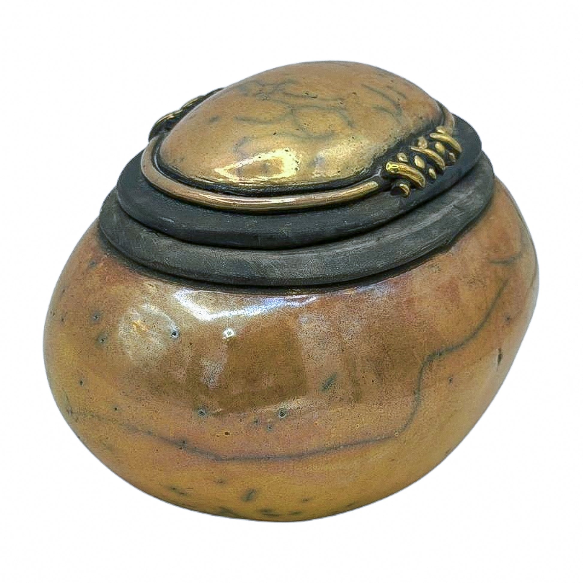This exquisite pottery piece by acclaimed artist Candone Wharton is signed, affirming its authenticity. Featuring a distinctive Raku box design, it’s crafted from vibrant, multicolored clay that adds depth and character to any collection. Blending contemporary artistry with traditional Raku techniques, this handmade box perfectly balances eye-catching style and practical function. Its unique glaze effects and careful craftsmanship make it a valuable addition for lovers of art pottery and decorative glassware. A sculptural piece with beautiful presence.