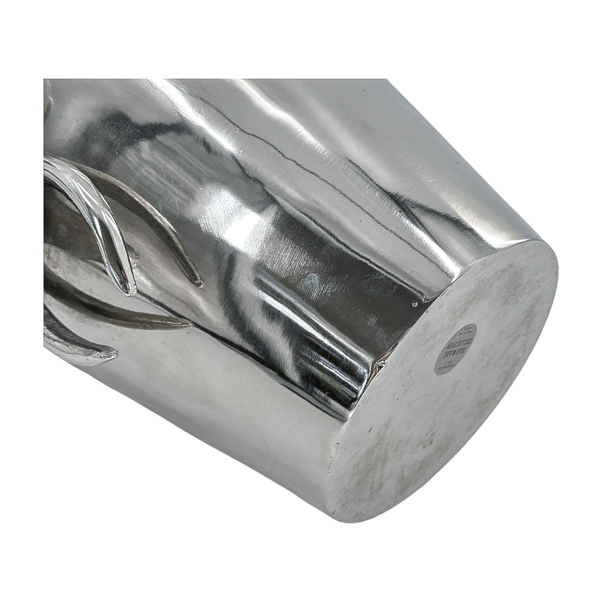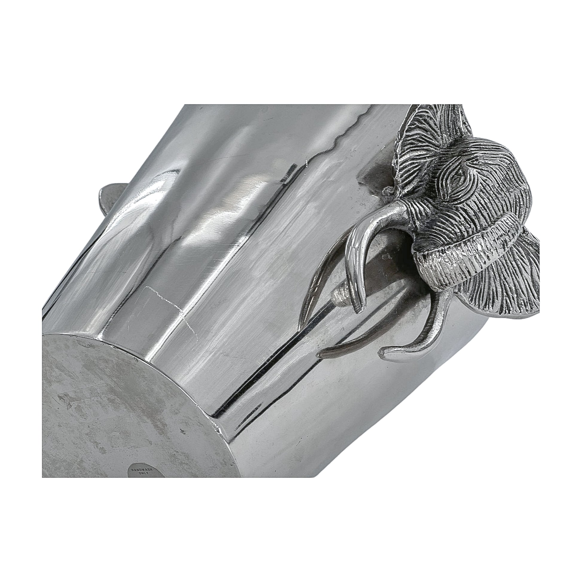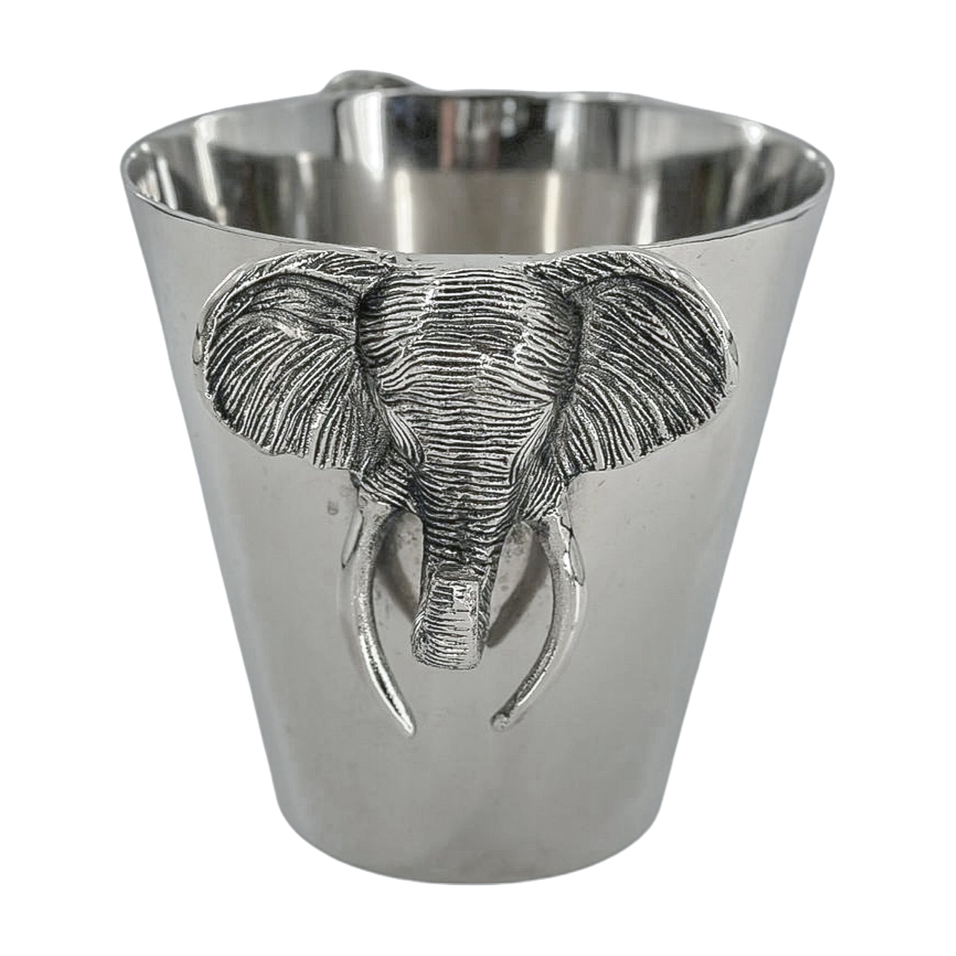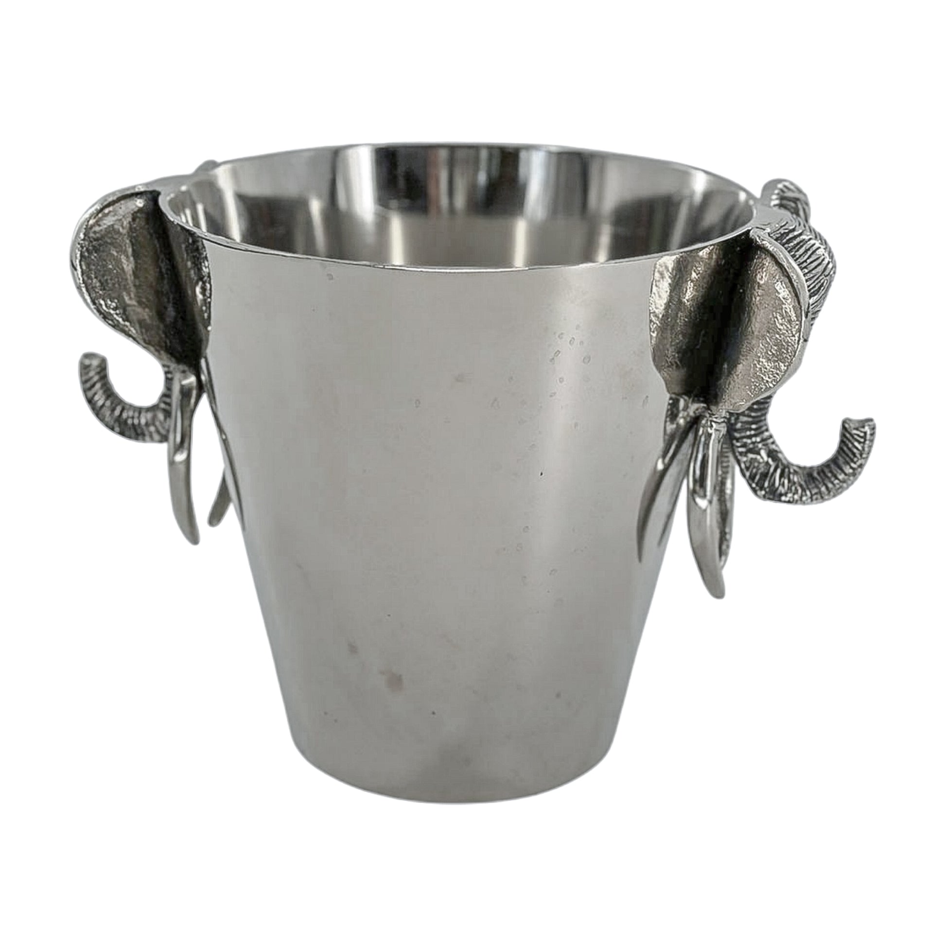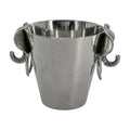 Barware with a wild side. This polished metal ice bucket features a sculptural elephant head with bold tusks and deep texture. It’s heavy, substantial, and ready to chill your favorite bottle—or just sit there looking fabulous.