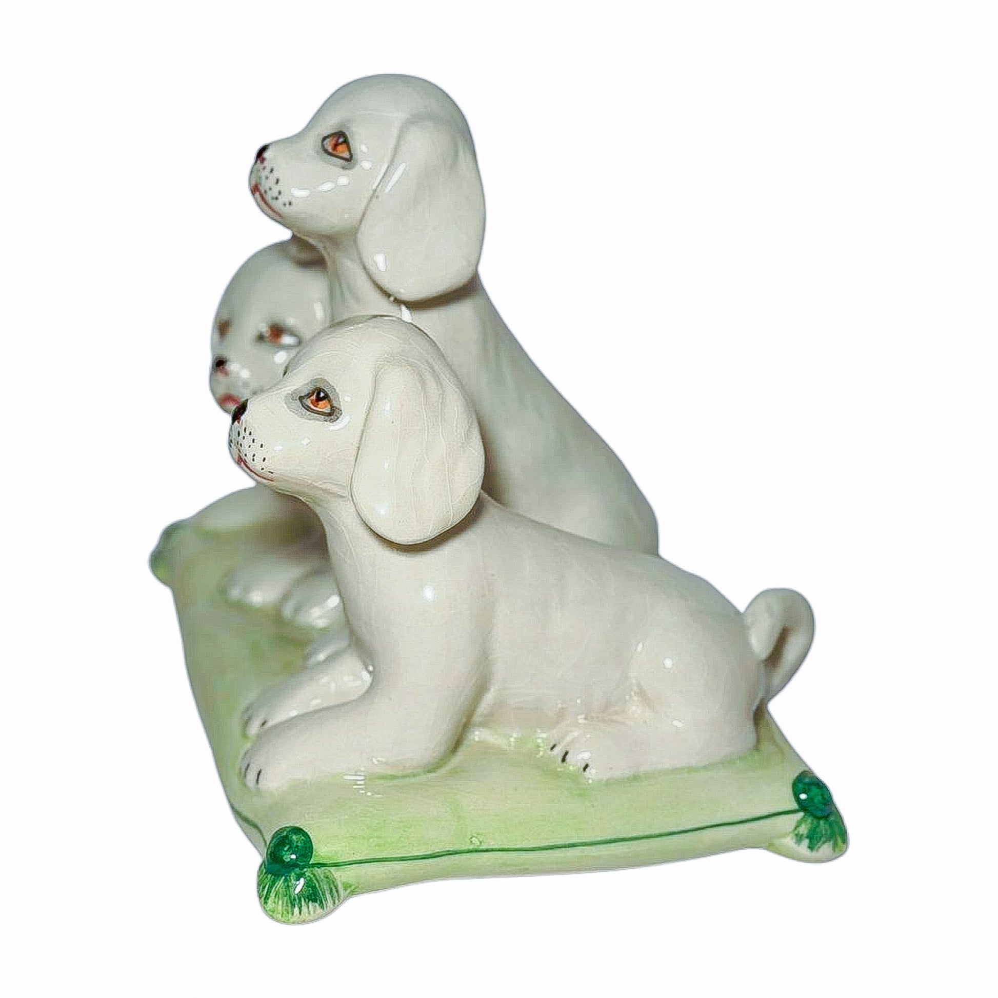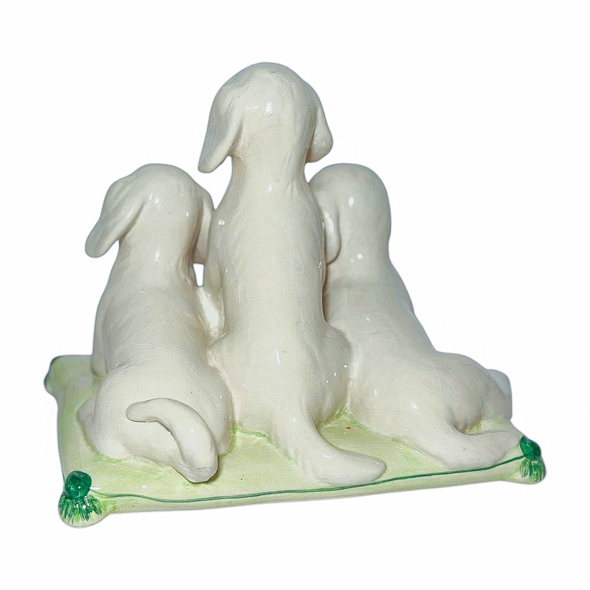Part paperweight, part pick-me-up. This trio of pups is hand-painted and full of attitude, from sleepy eyes to painted paws. Made in Italy, it sits atop a soft green ceramic cushion and practically begs for a spot on a desk or shelf.