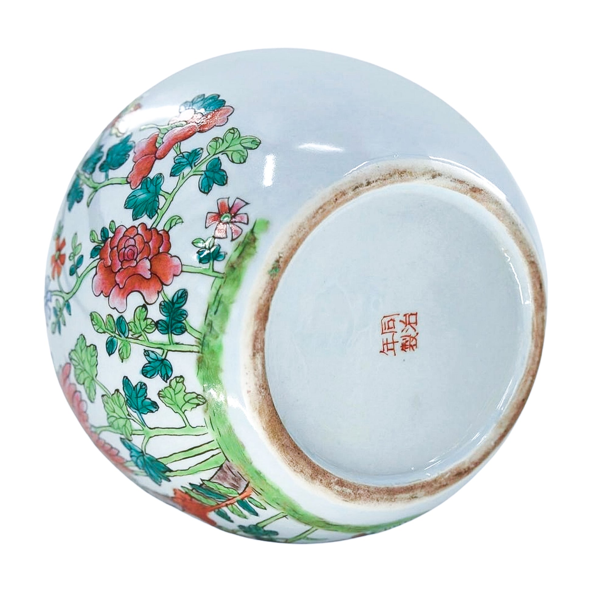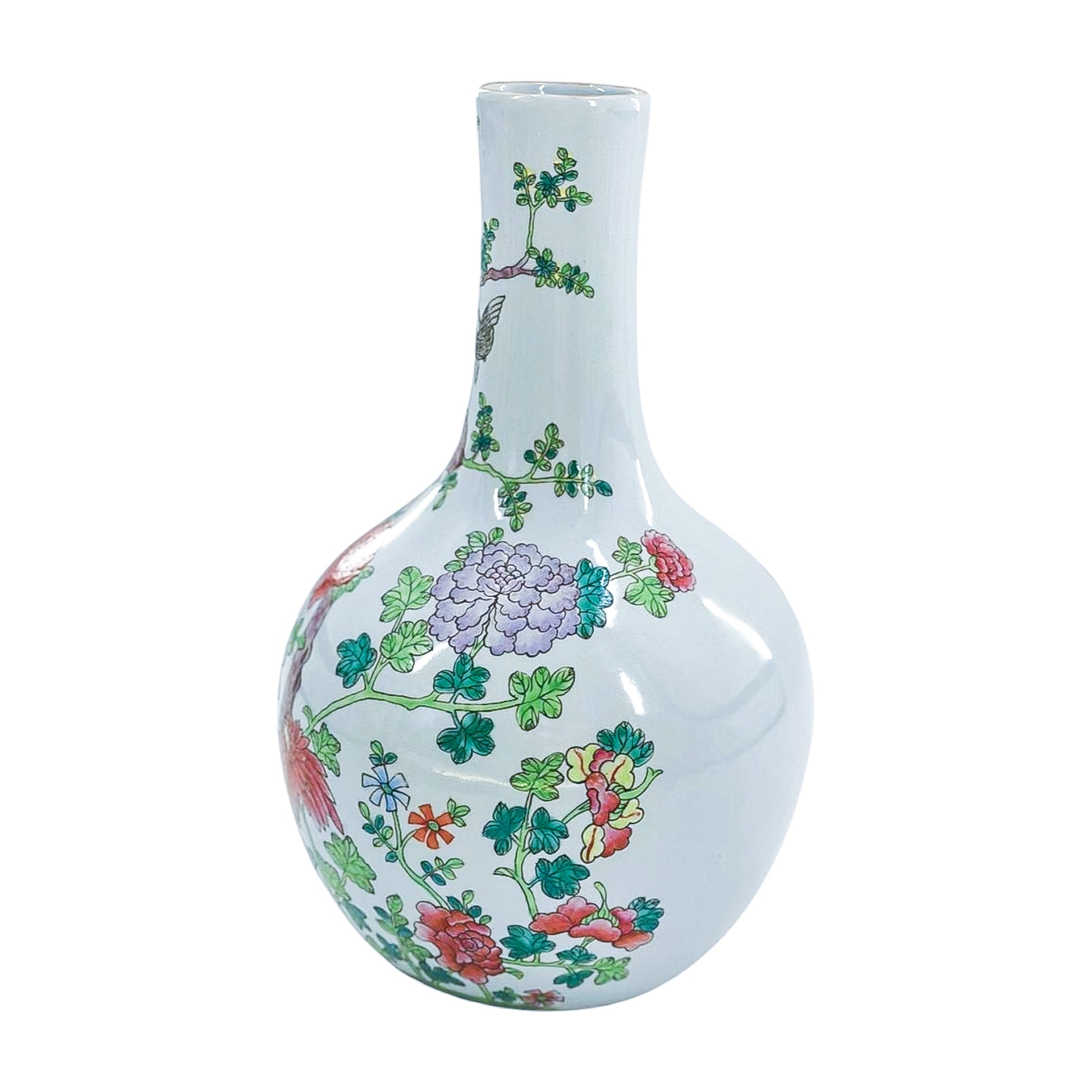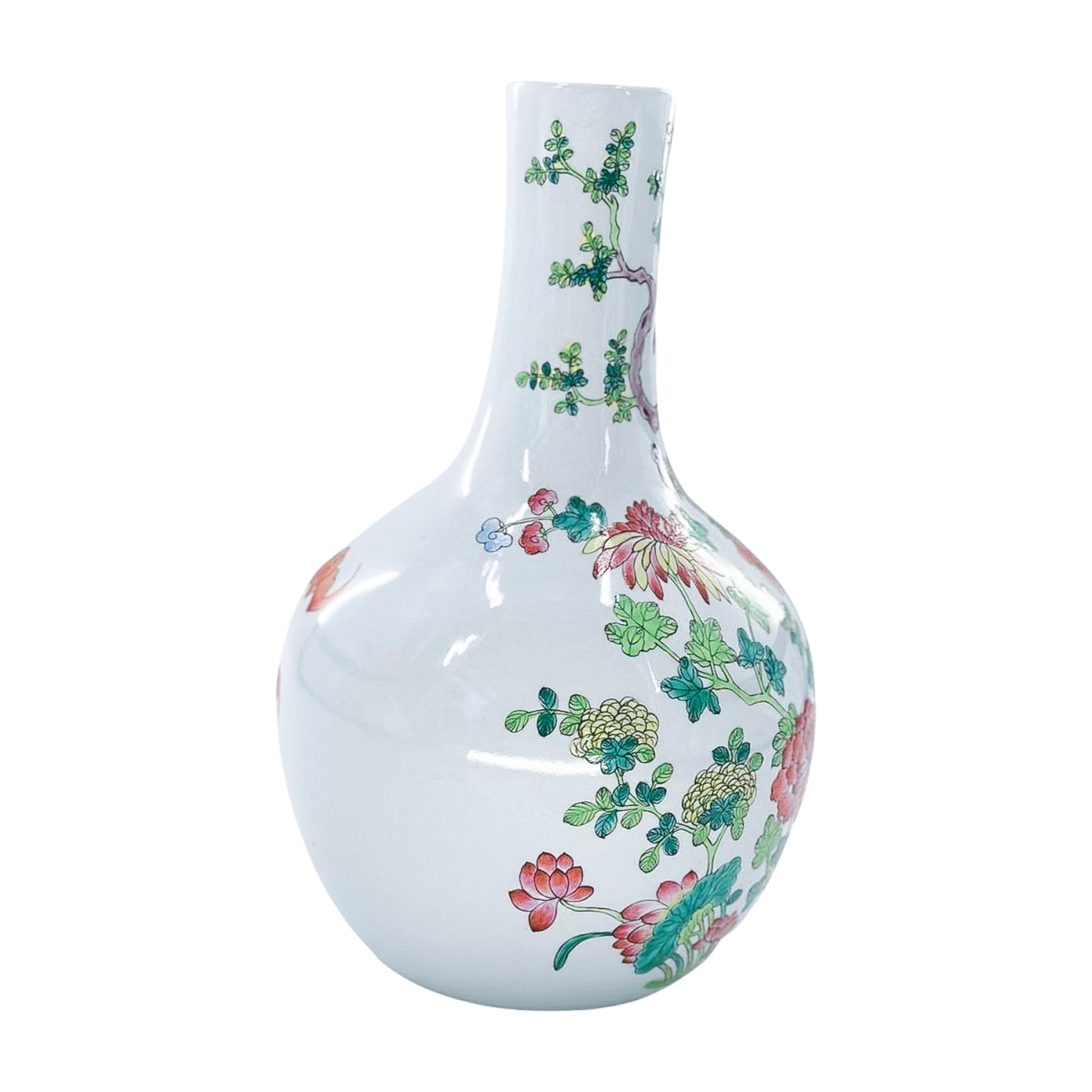 Classic shape, knockout pattern. This gourd-shaped vase is hand-painted with blooming peonies, twisting branches, and chirping birds—all in vibrant famille rose hues. It’s tall, elegant, and looks just as good empty as it does holding a dramatic stem or two.