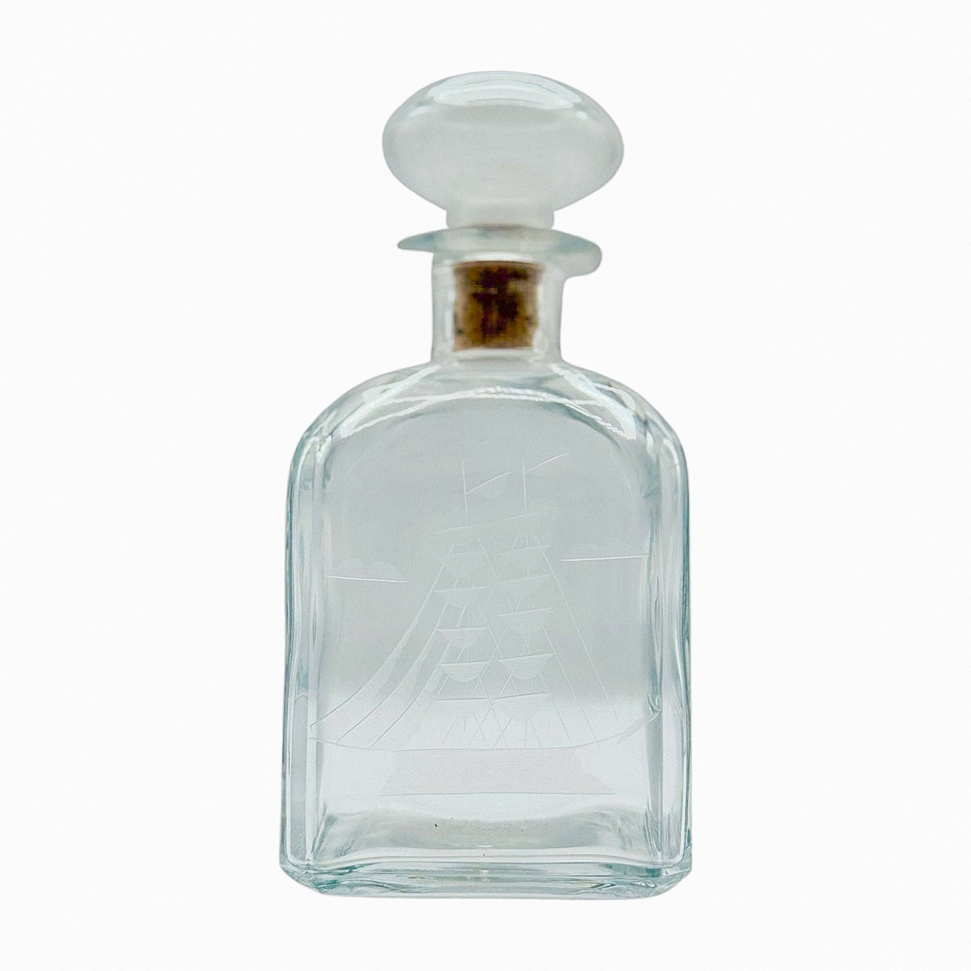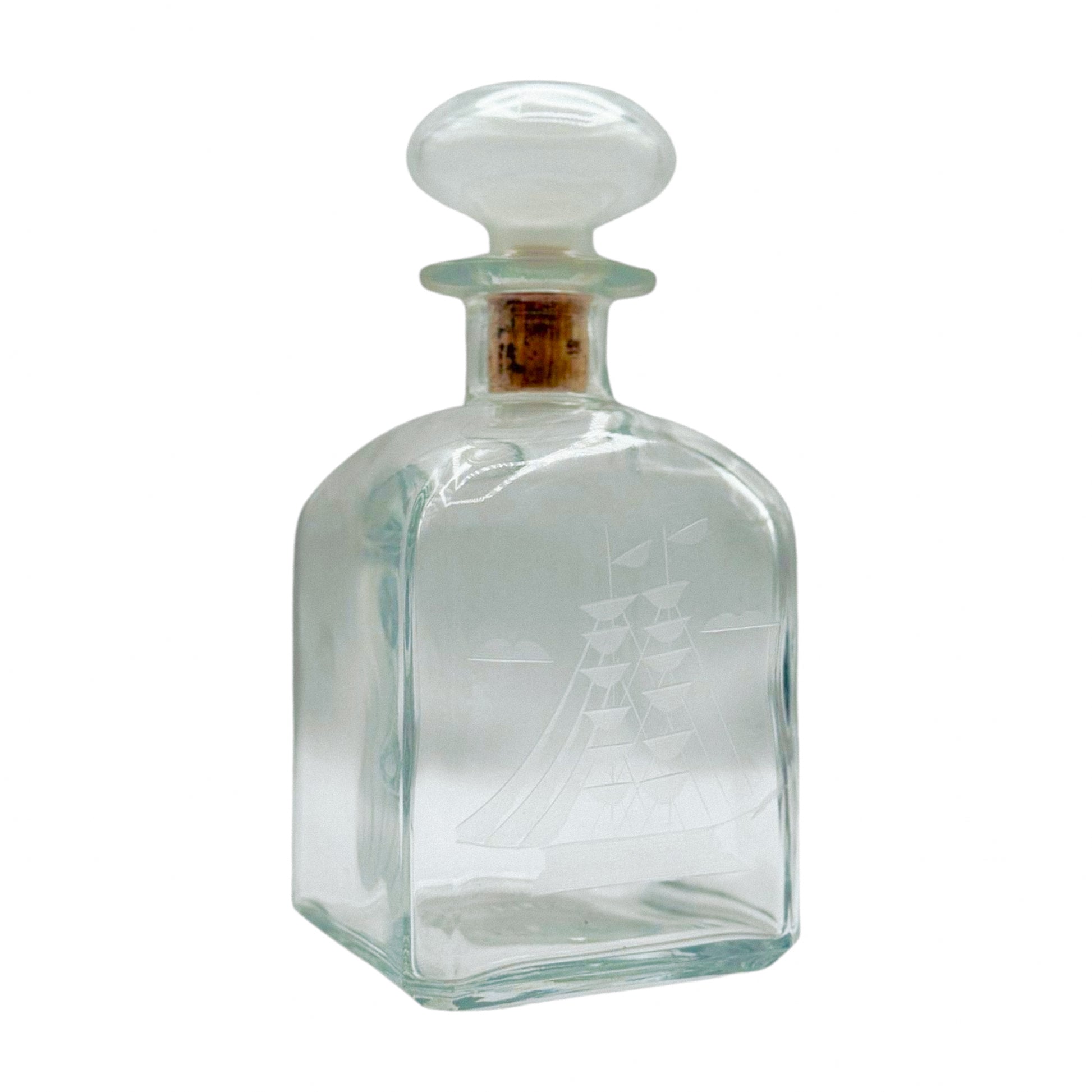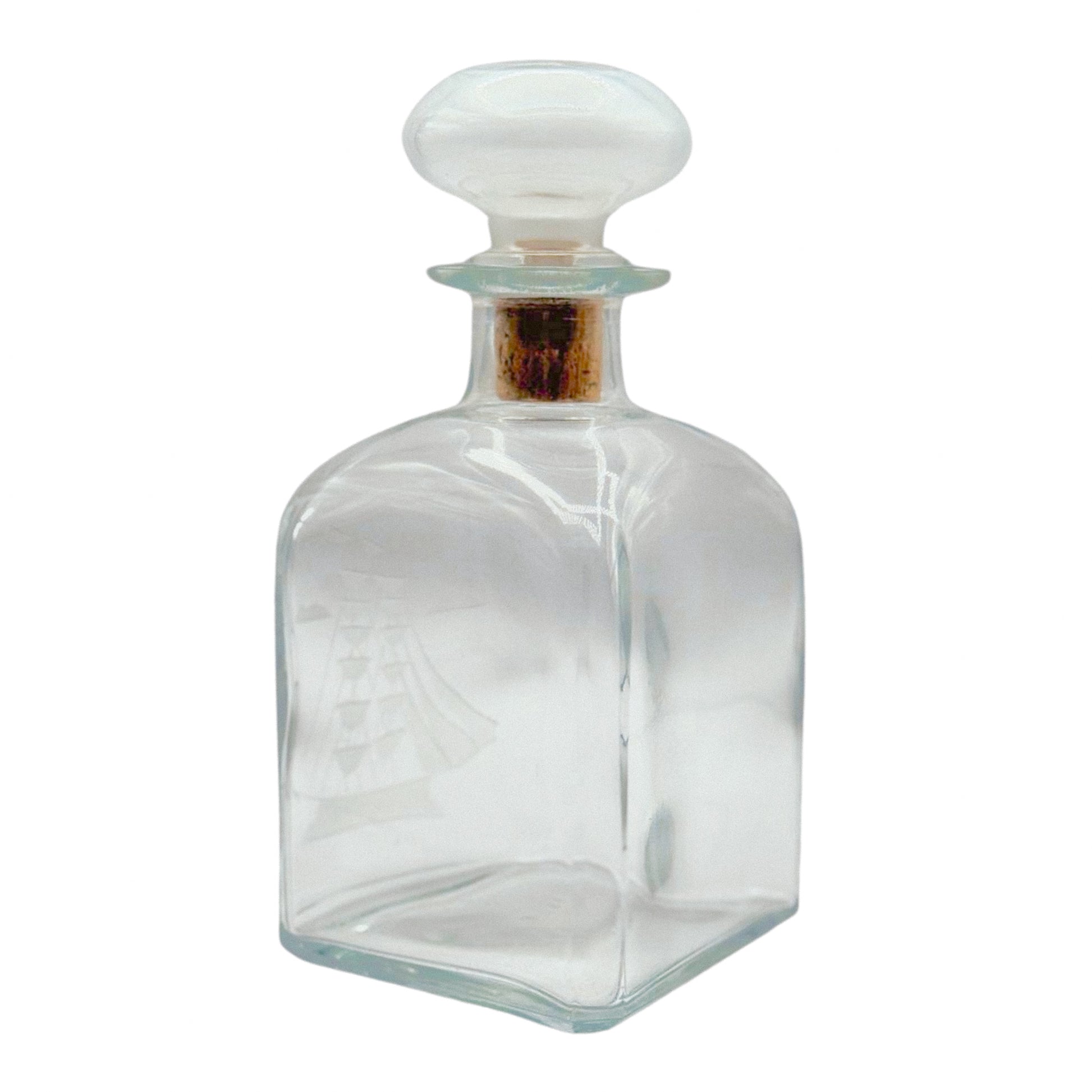 A classic bar cart staple with a quietly nautical twist. This square Italian decanter by Luigi Bormioli is etched with a finely detailed tall ship, complete with sails, flags, and rigging. The glass has a satisfyingly weighty feel, and the rounded stopper fits snugly with a gentle turn. It’s handsome without trying, and just detailed enough to draw a closer look. Ideal for housing bourbon, scotch, or that very good tequila you don’t need to label.