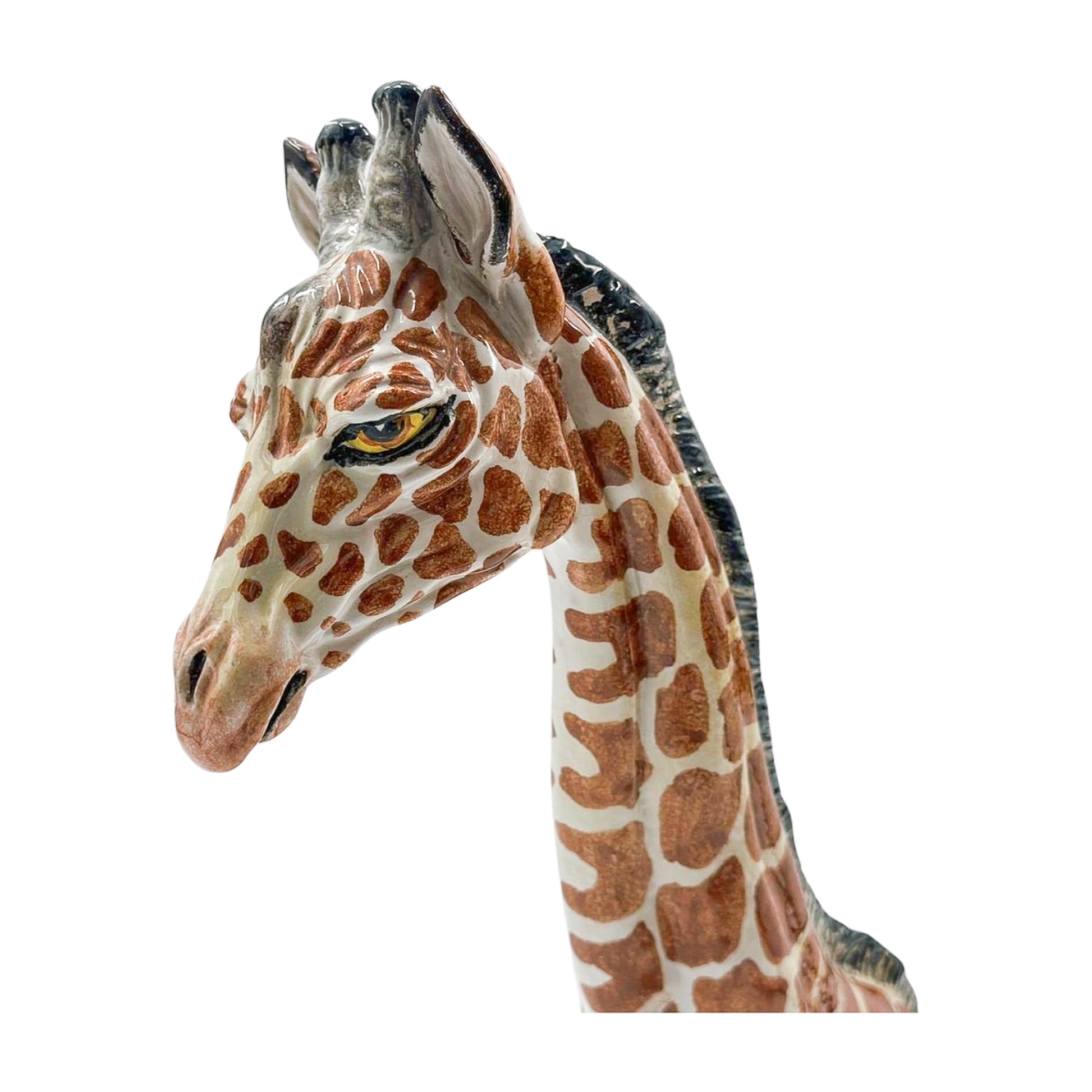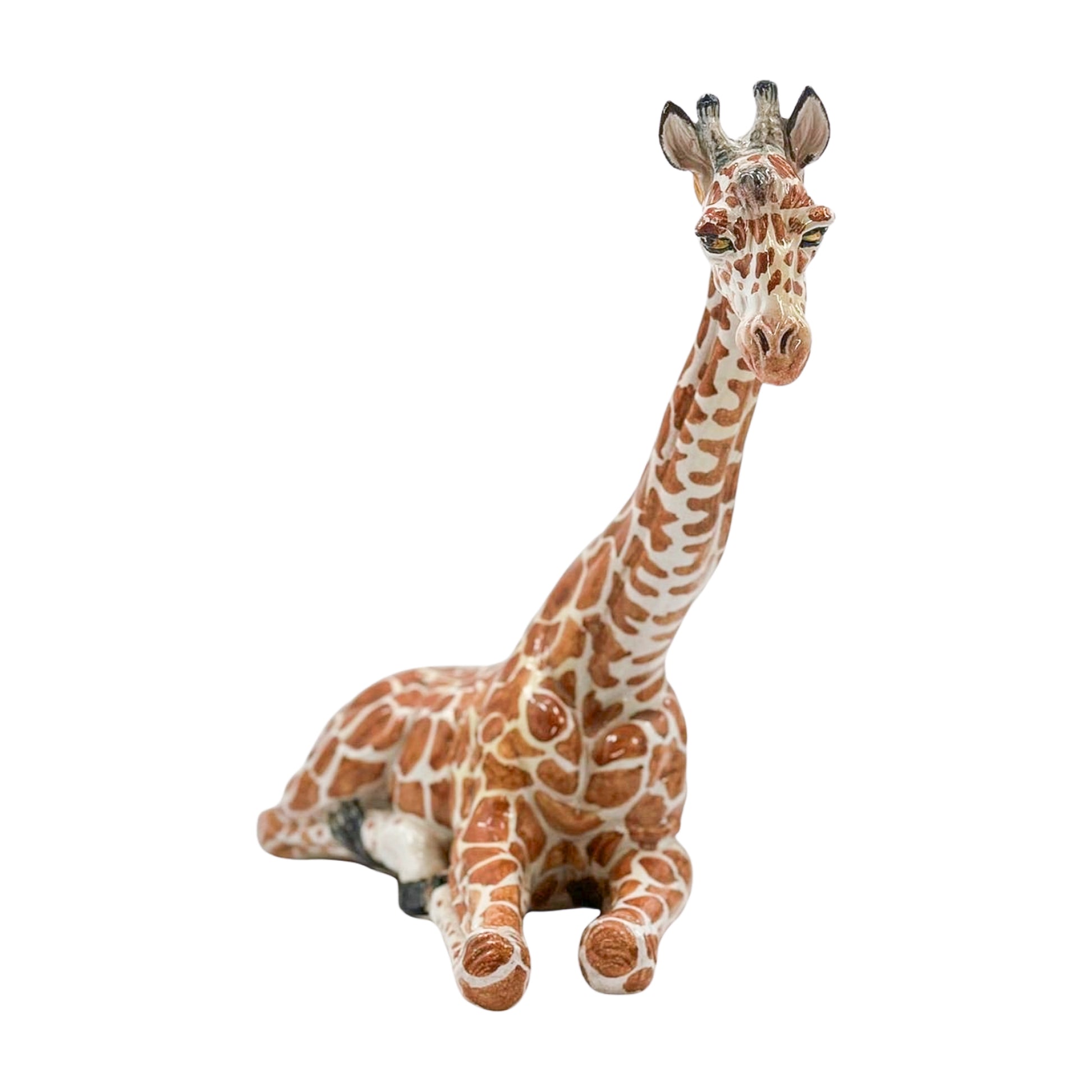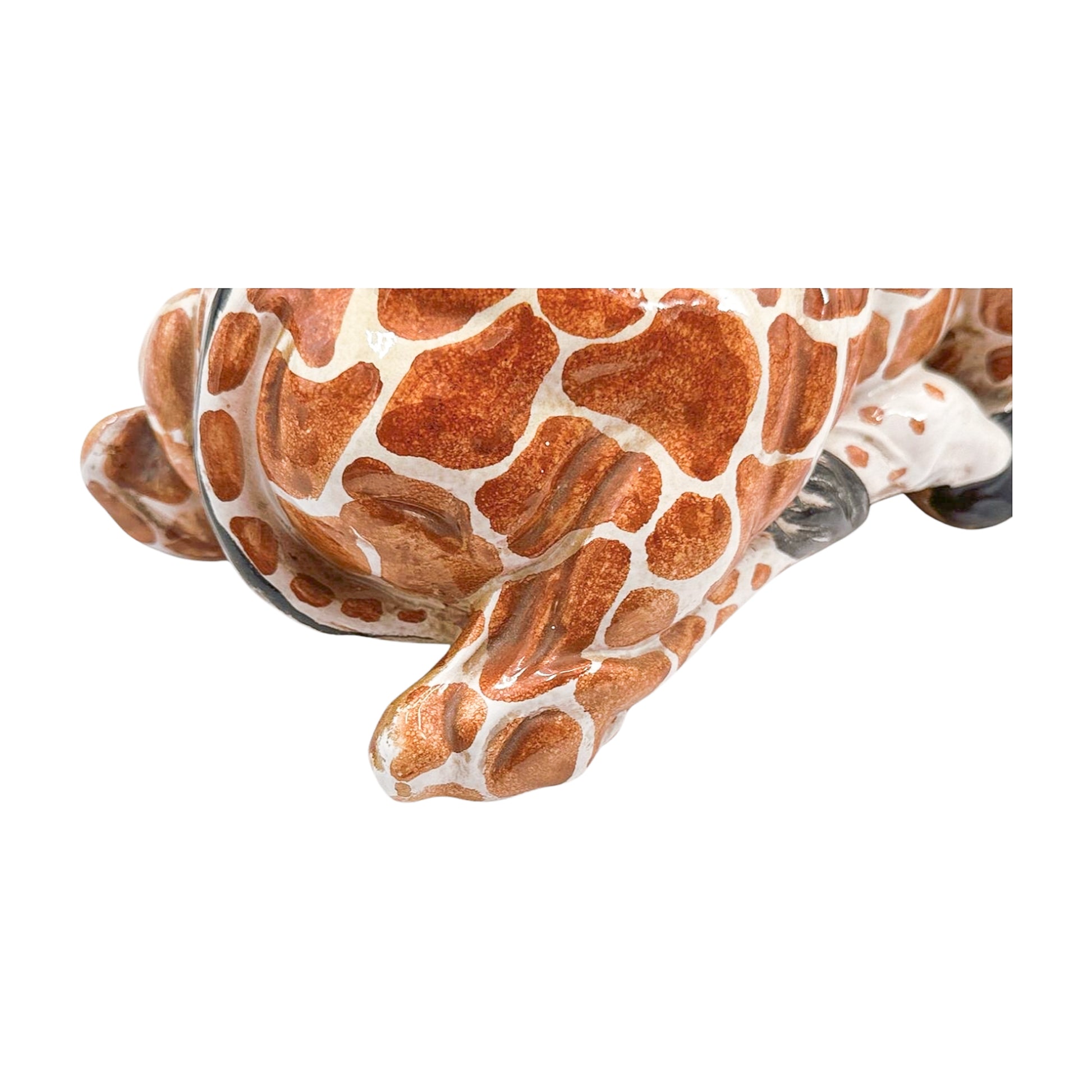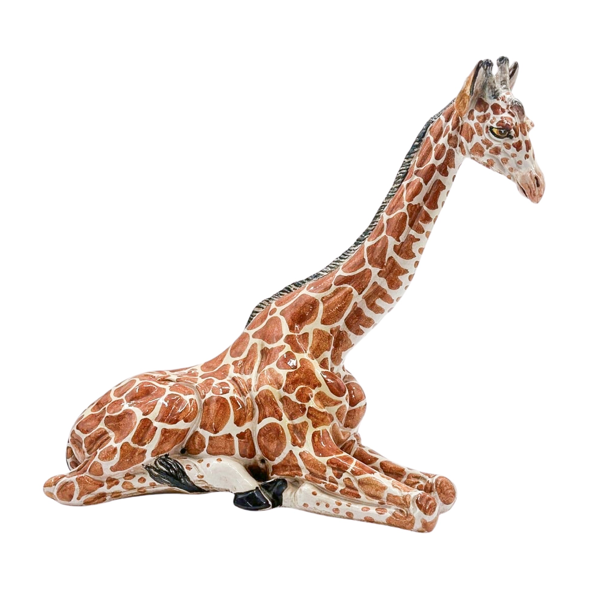 Some pieces just have presence. This large, hand-painted ceramic giraffe is equal parts elegant and unbothered, with a relaxed pose and a side eye that reads, “I don’t have time for this.” At nearly 20 inches tall and signed Italy on the base, it’s not background decor—it’s the main character.