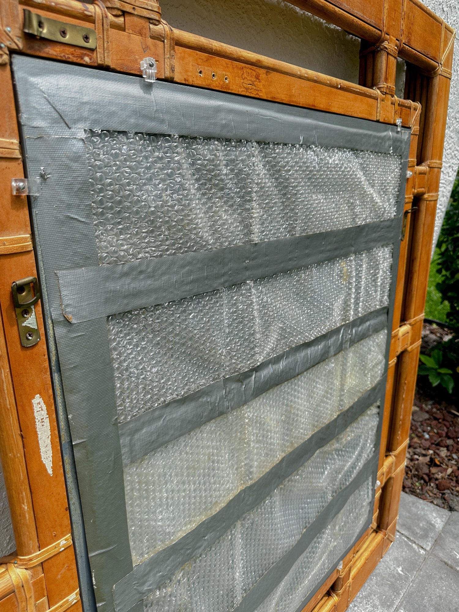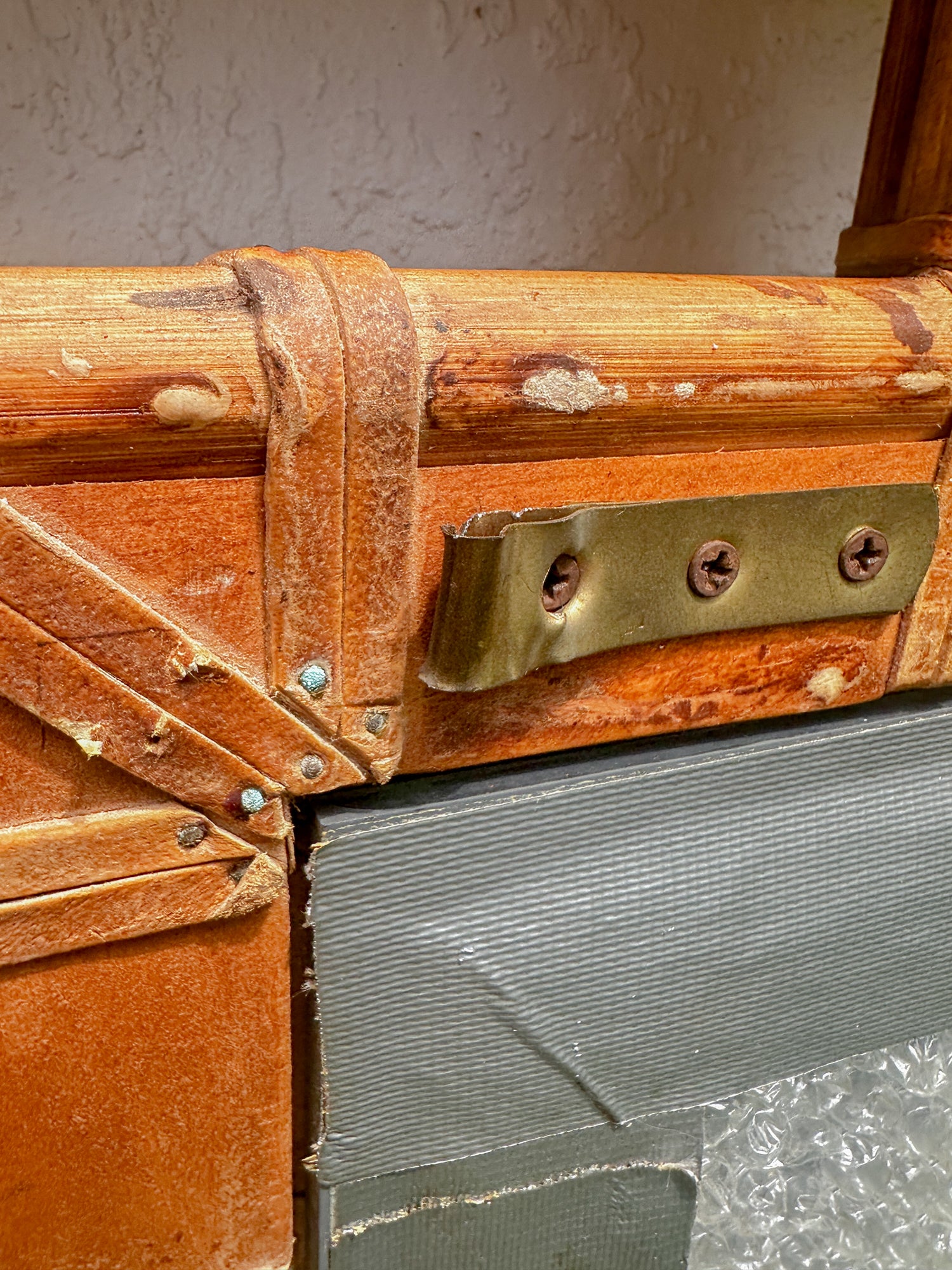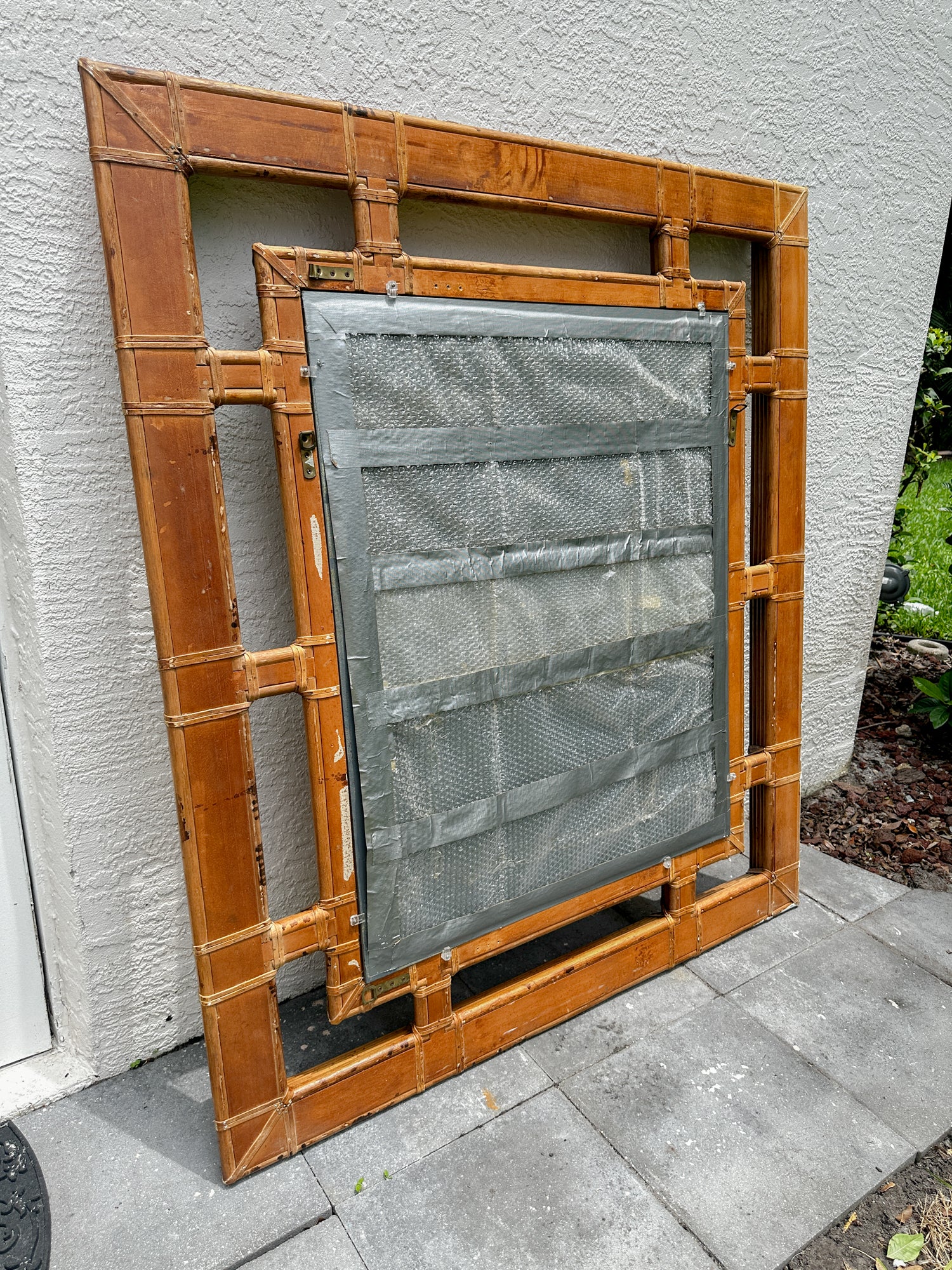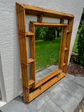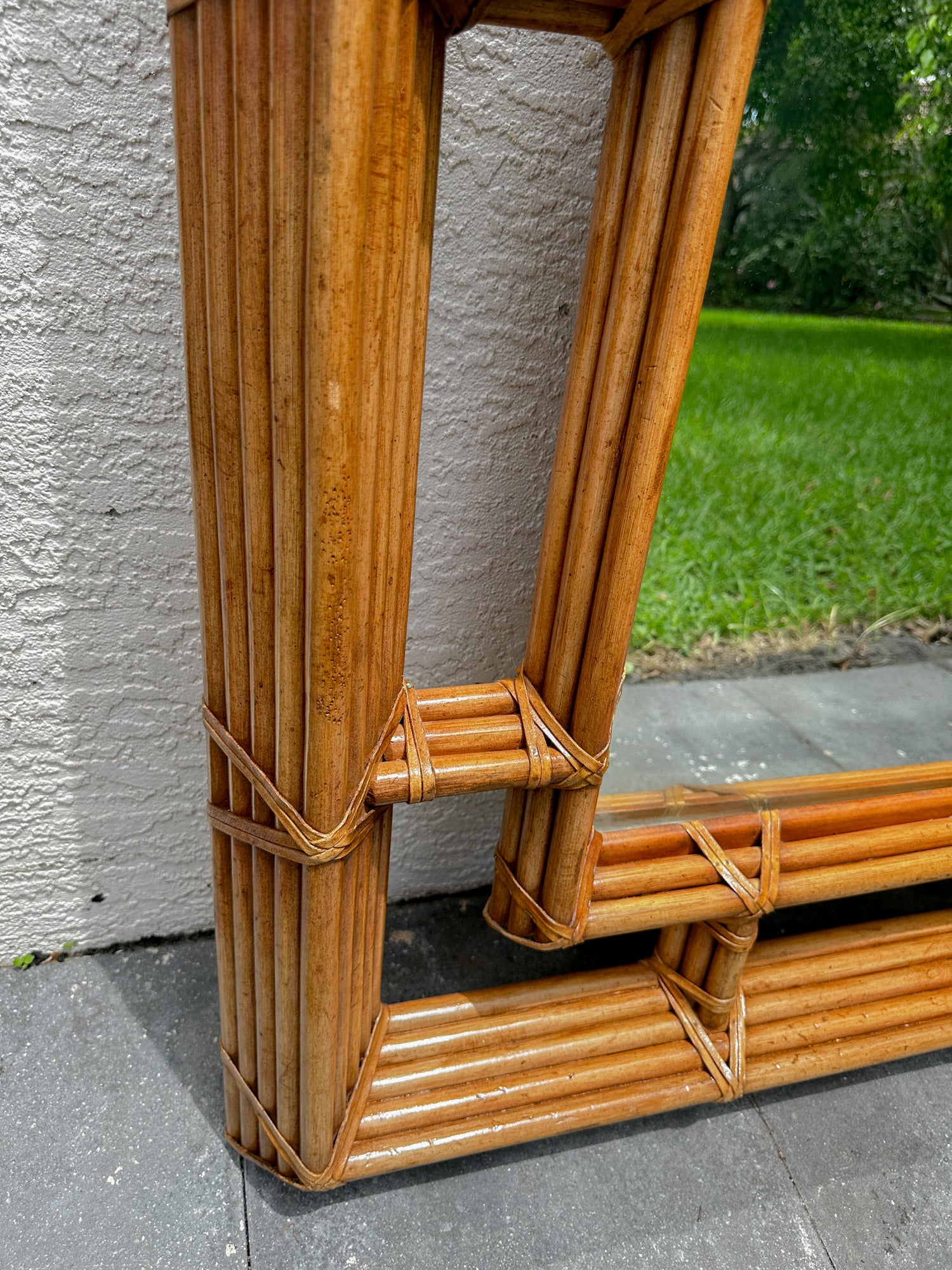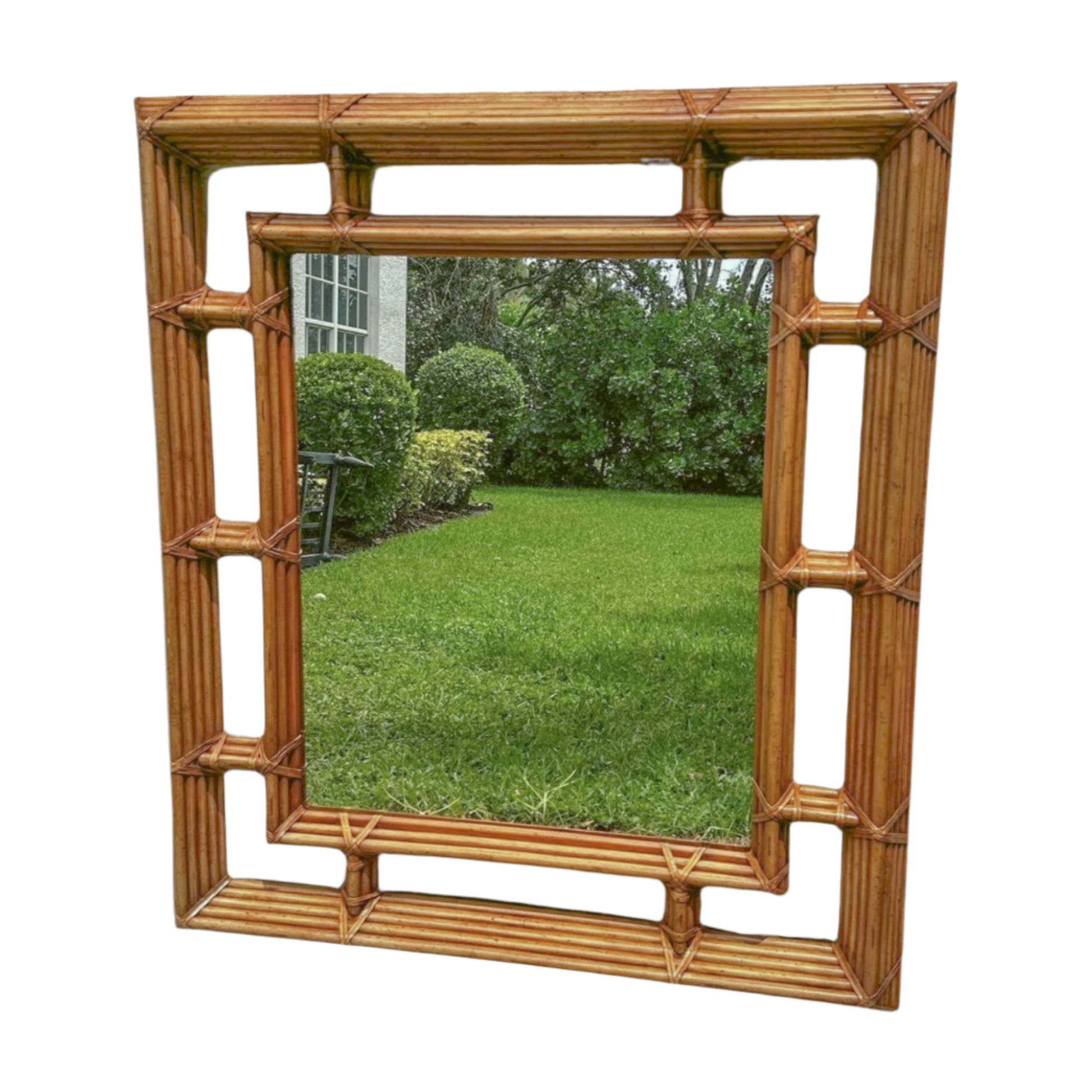 A major statement. This oversized mirror features sculptural layers of rattan and reed, tied with wrapped raffia in a geometric grid pattern. The warm finish adds instant texture, making this piece ideal for coastal homes, sunrooms, or anywhere you want to go big.