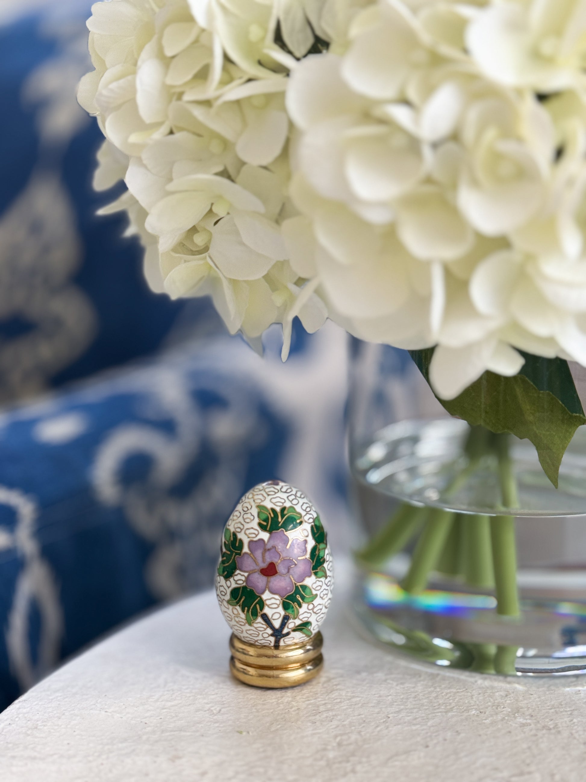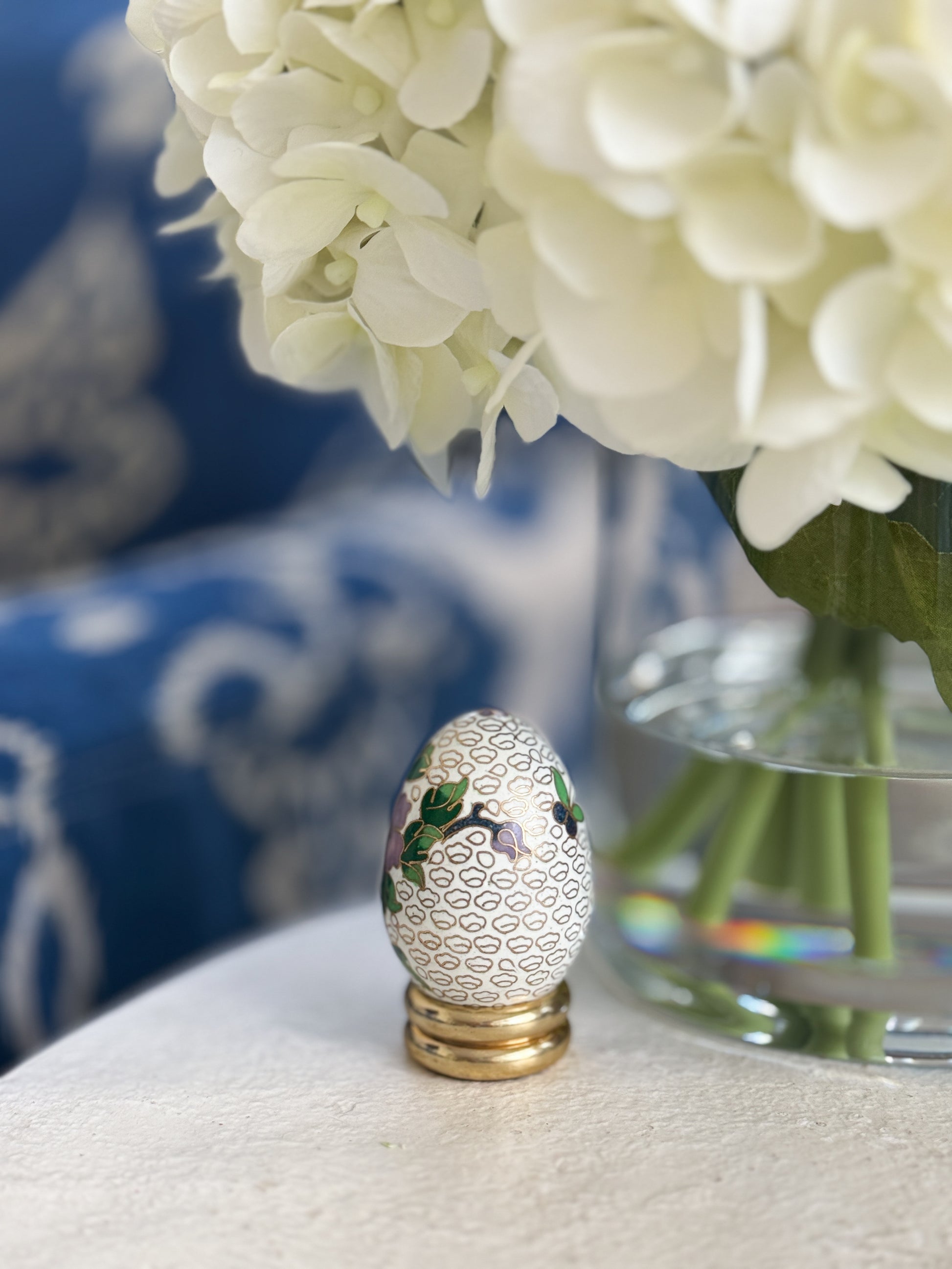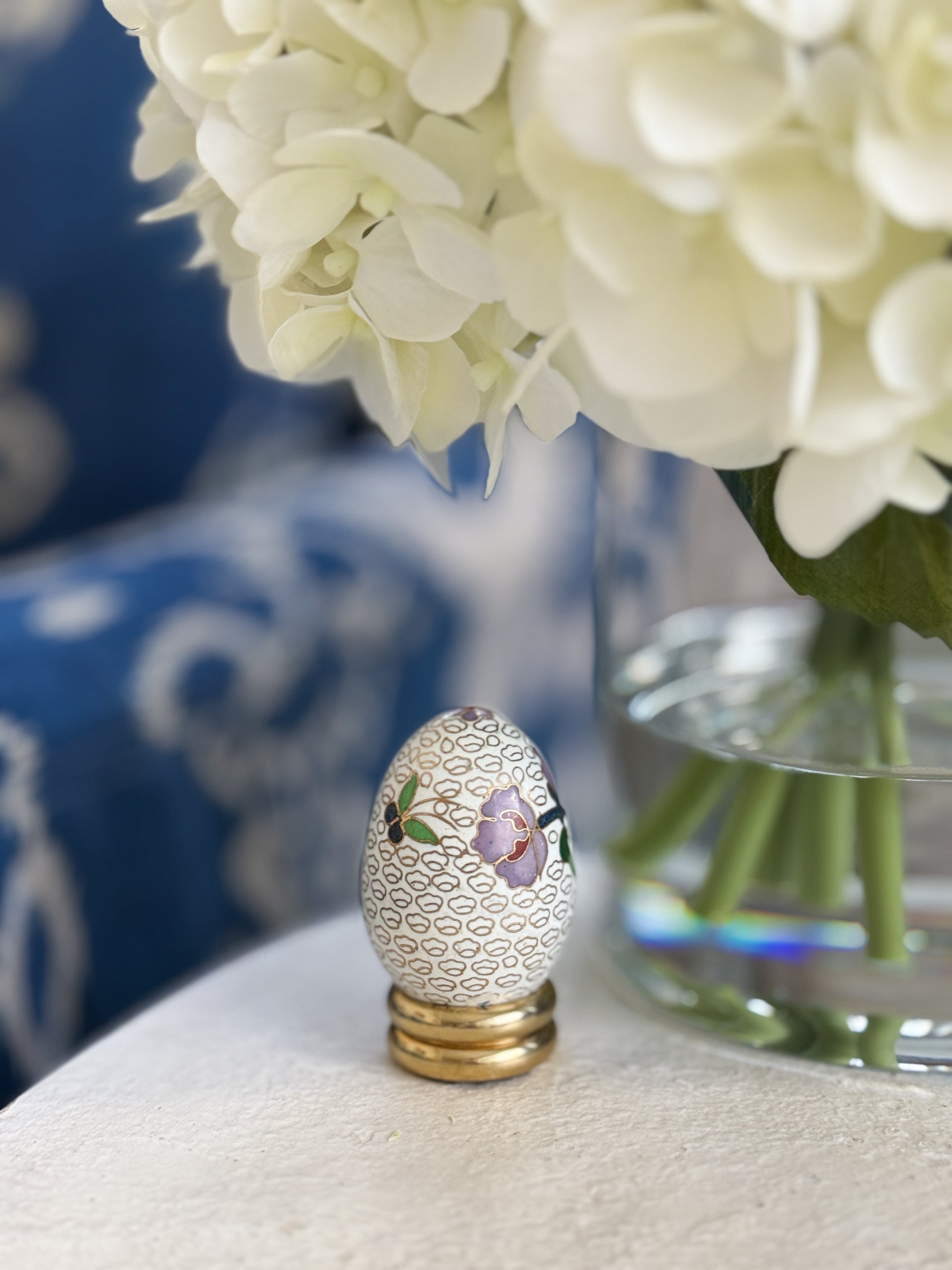 Petite Cloisonné Floral Egg with Brass Base