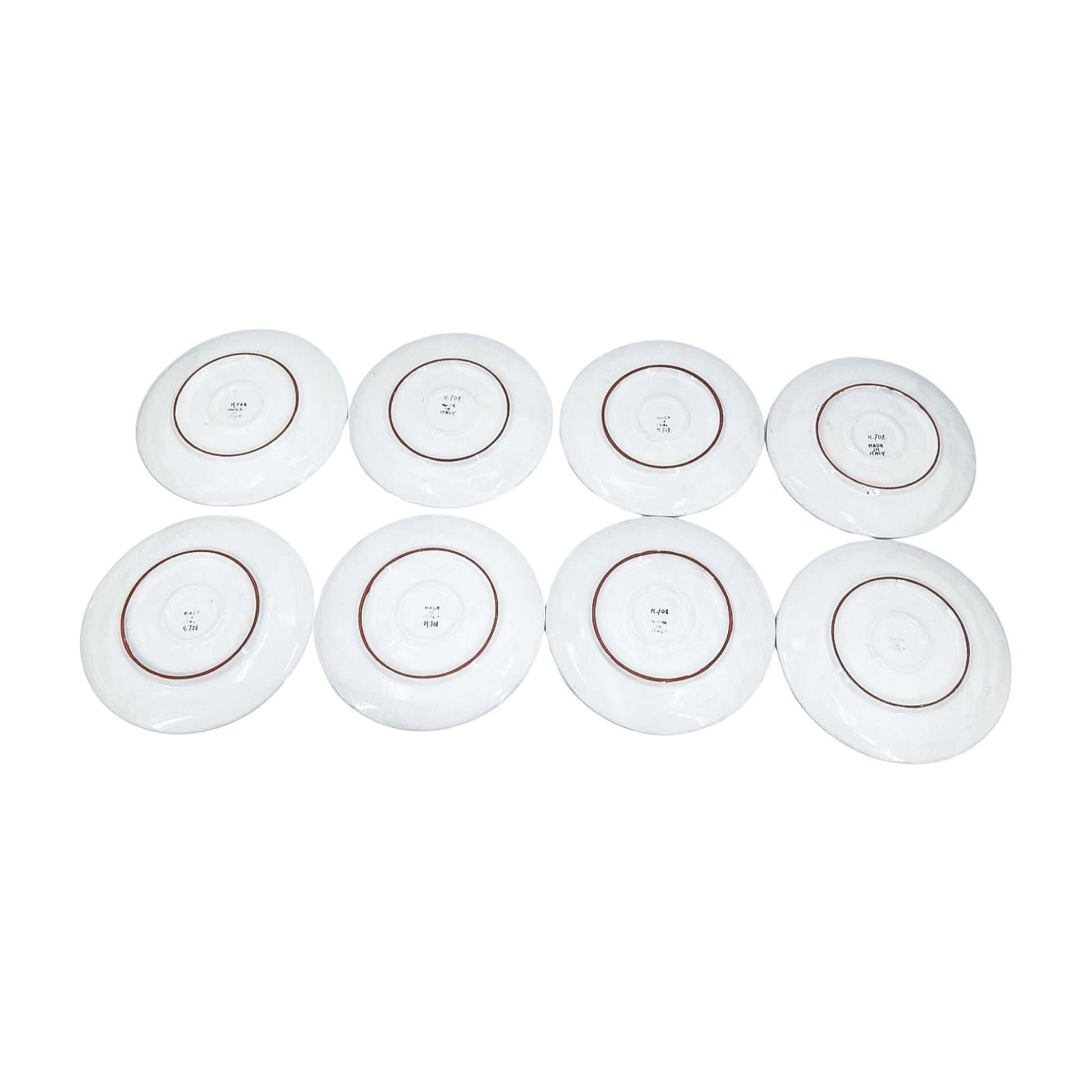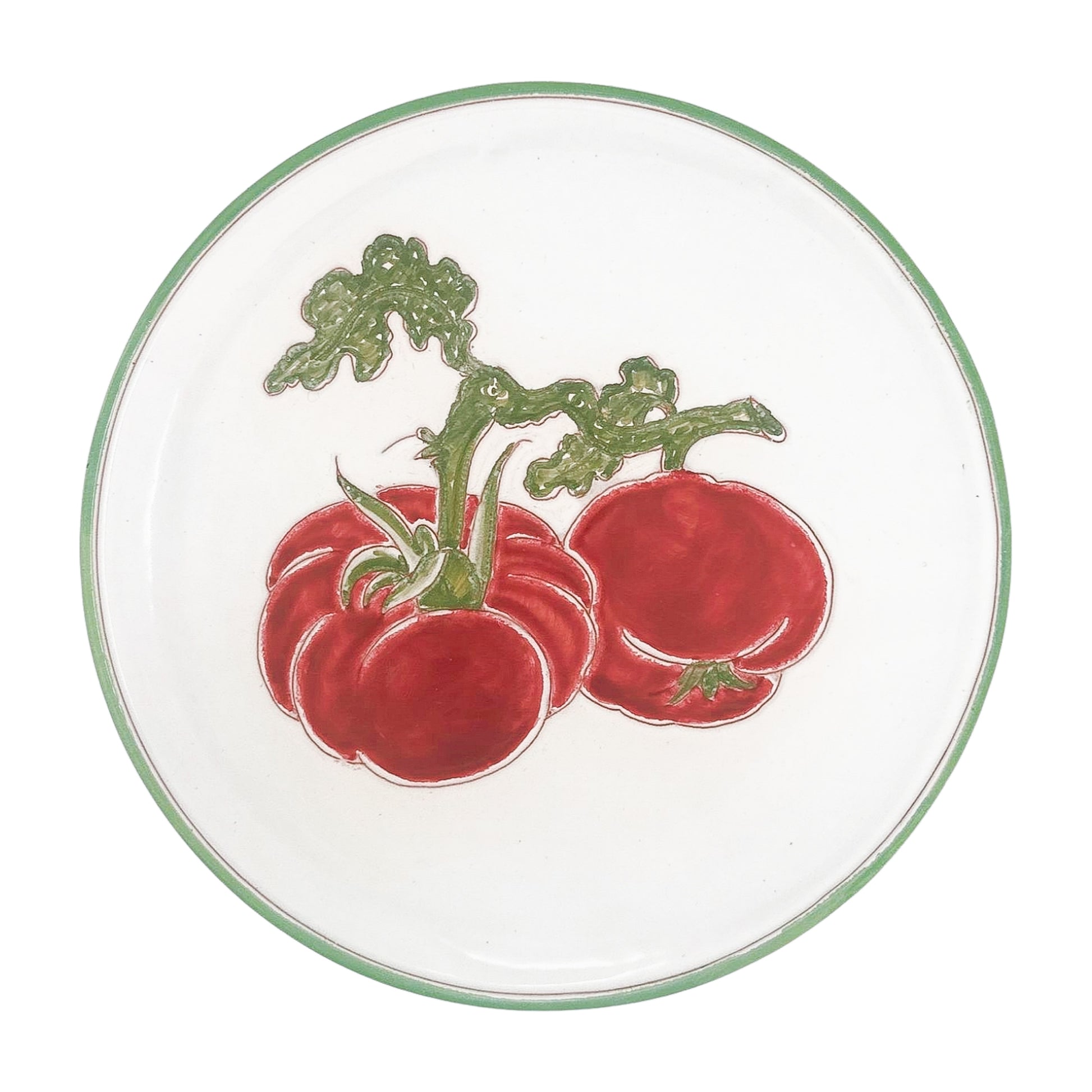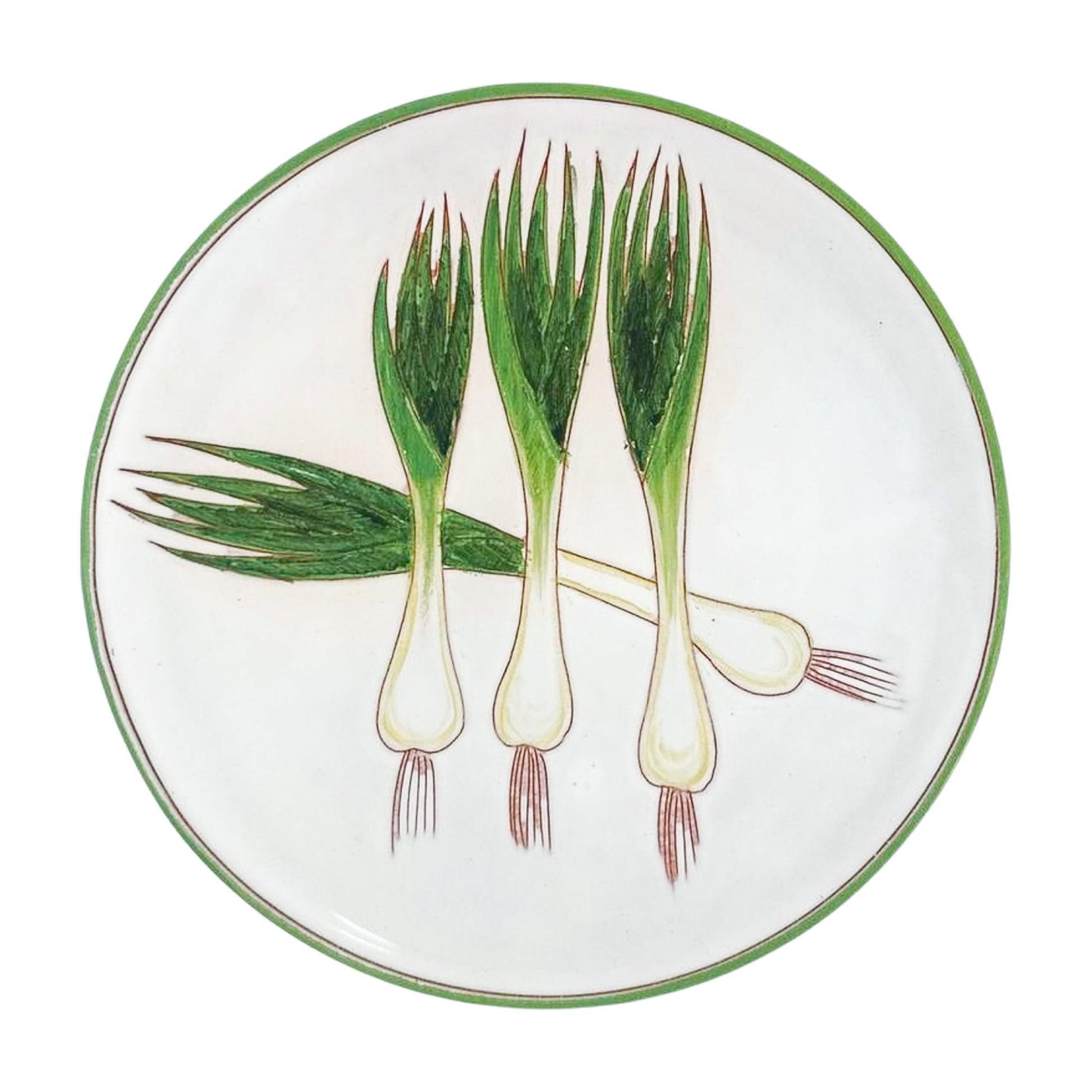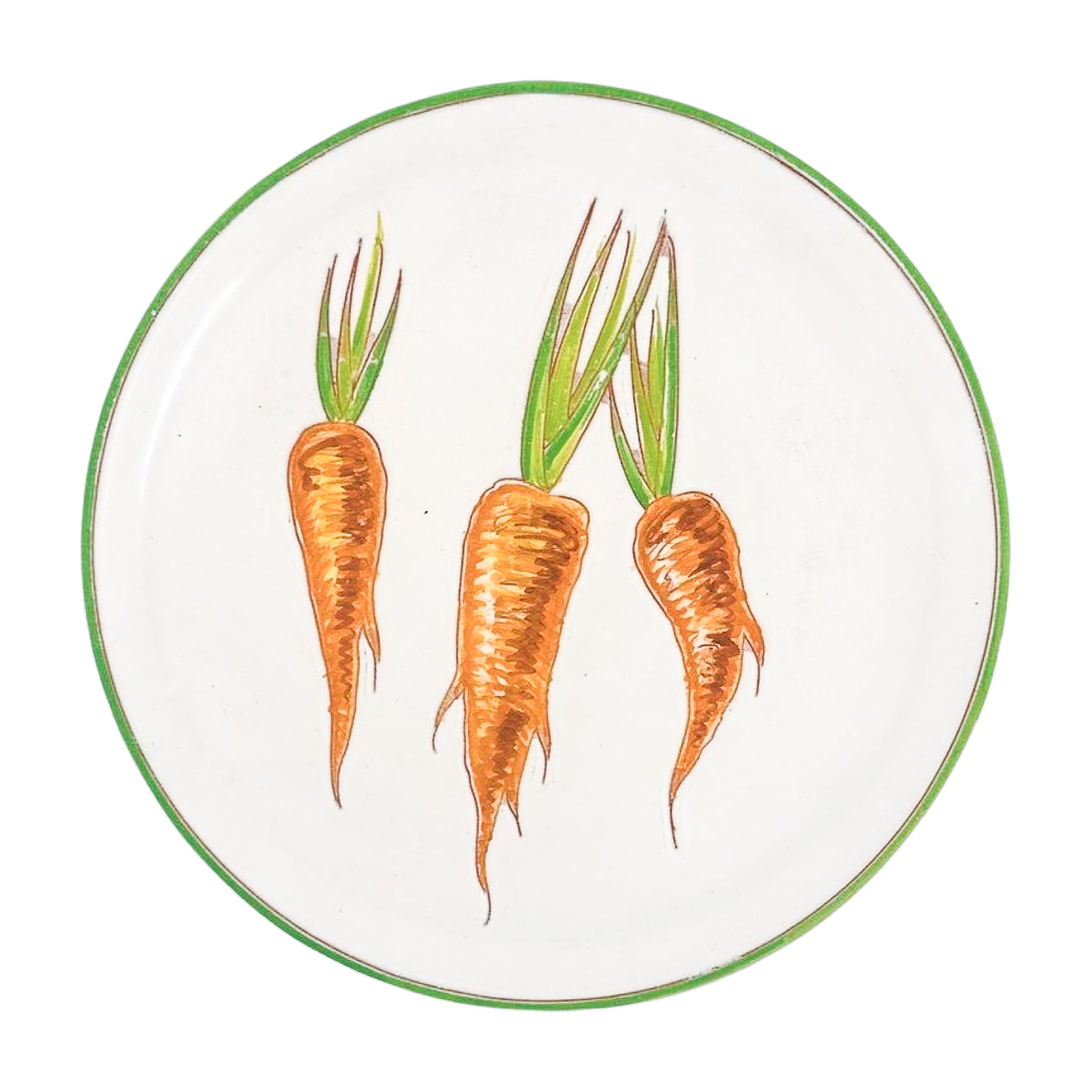 Playful, painterly, and just the right amount of rustic. This set of eight ceramic plates features hand-painted vegetables—from peas and carrots to spring onions and radishes—each bordered with a crisp green rim. Made in Italy, they bring a little irreverence to the table without veering kitsch. Stack them high, or hang them as a series.