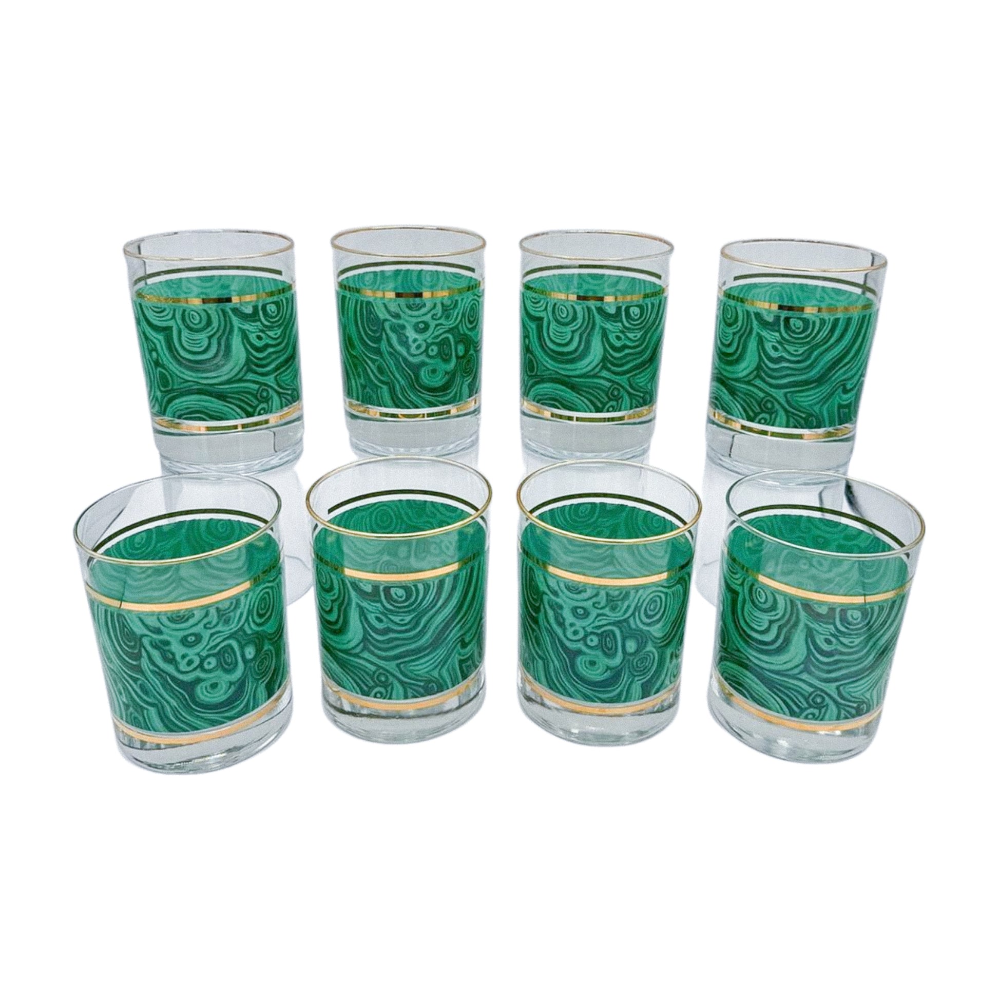 Luxe without being precious, this set of eight vintage tumblers features swirling faux-malachite exteriors wrapped in a thin band of gold at the rim. They catch the light in all the right ways, bringing bold color and polish to any bar cart or table setting. Pair with our vintage malachite chargers for a maximalist look, or let them add a touch of drama to a simpler setup. Instant visual payoff, zero fragility.