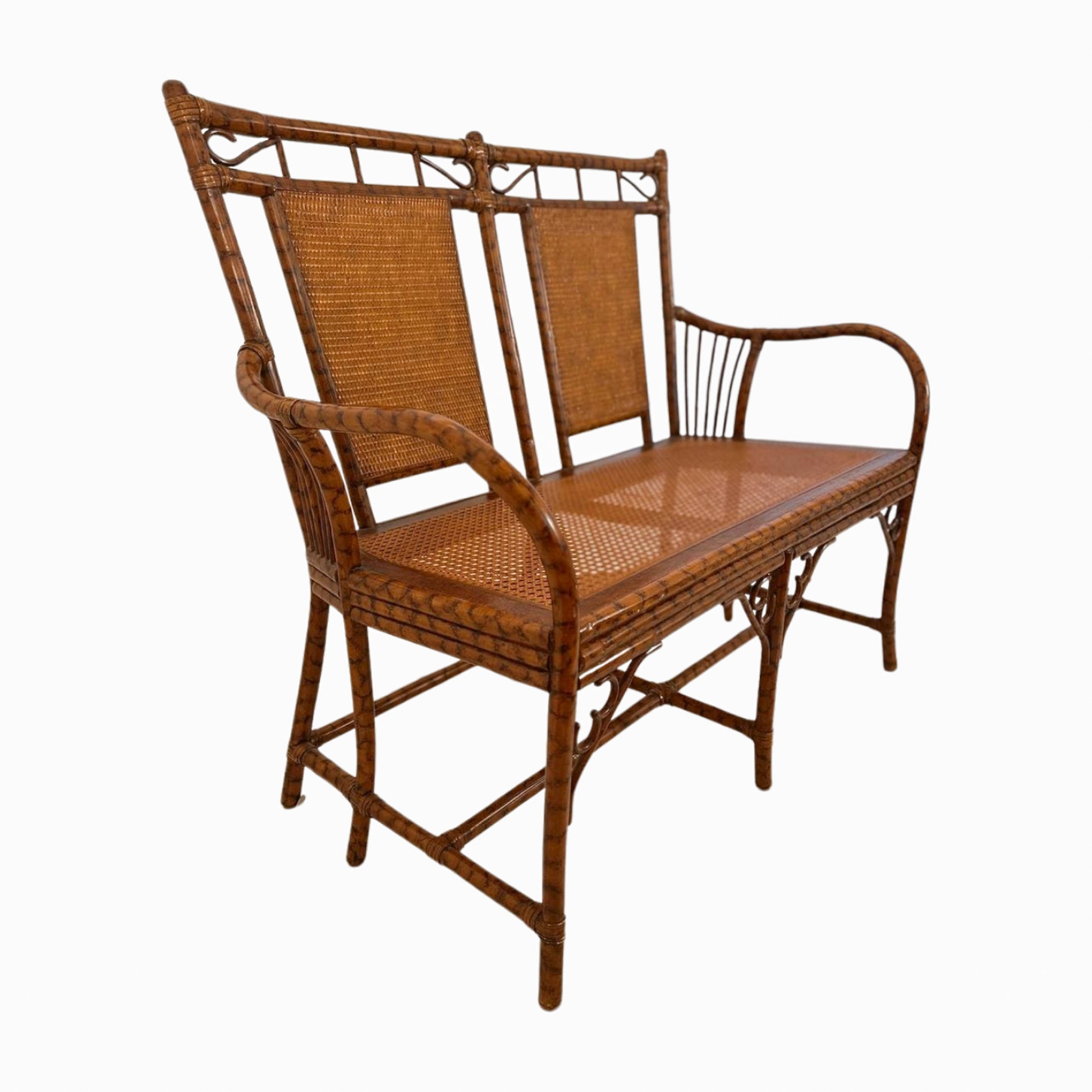Vintage Bamboo and Rattan Bench