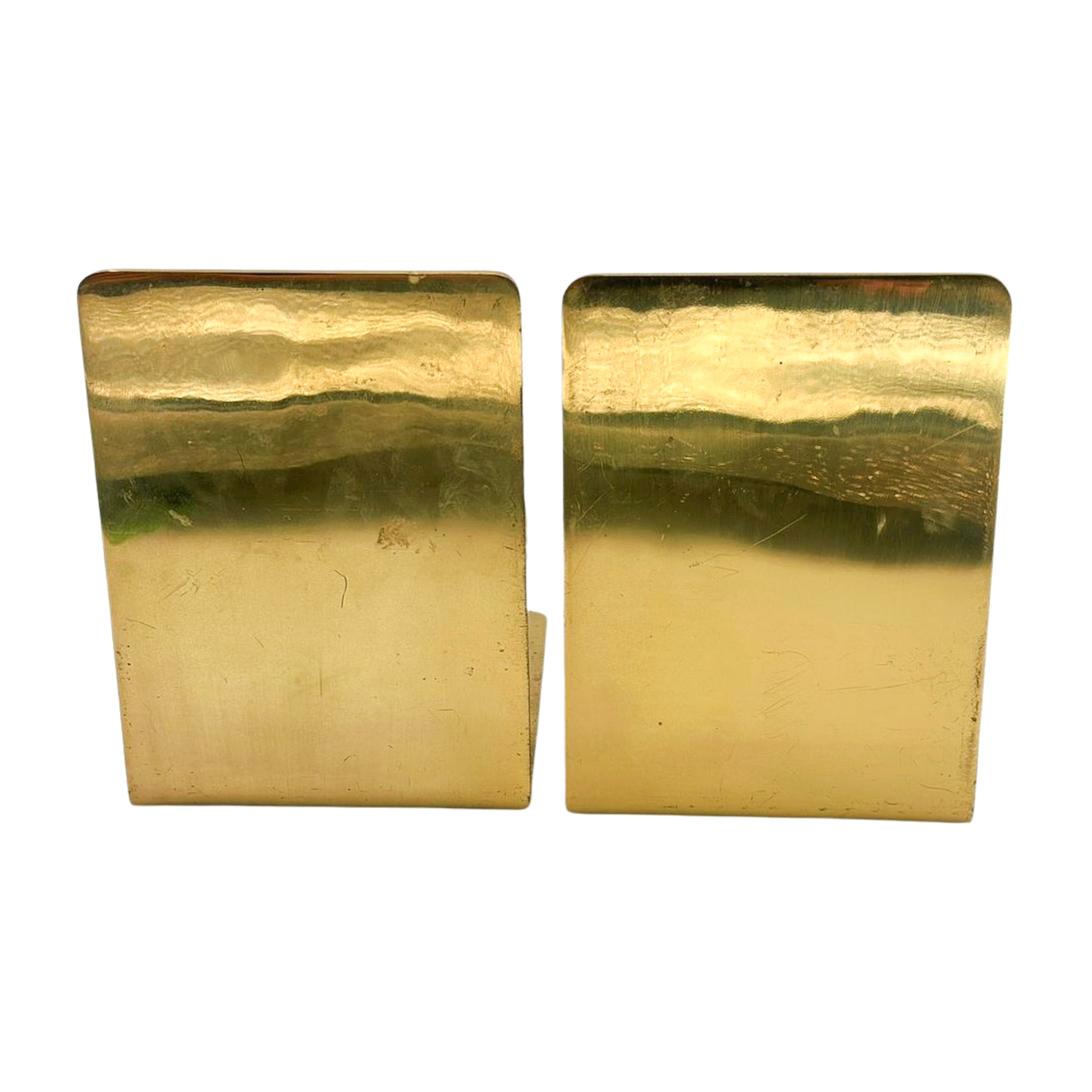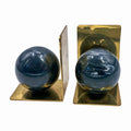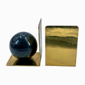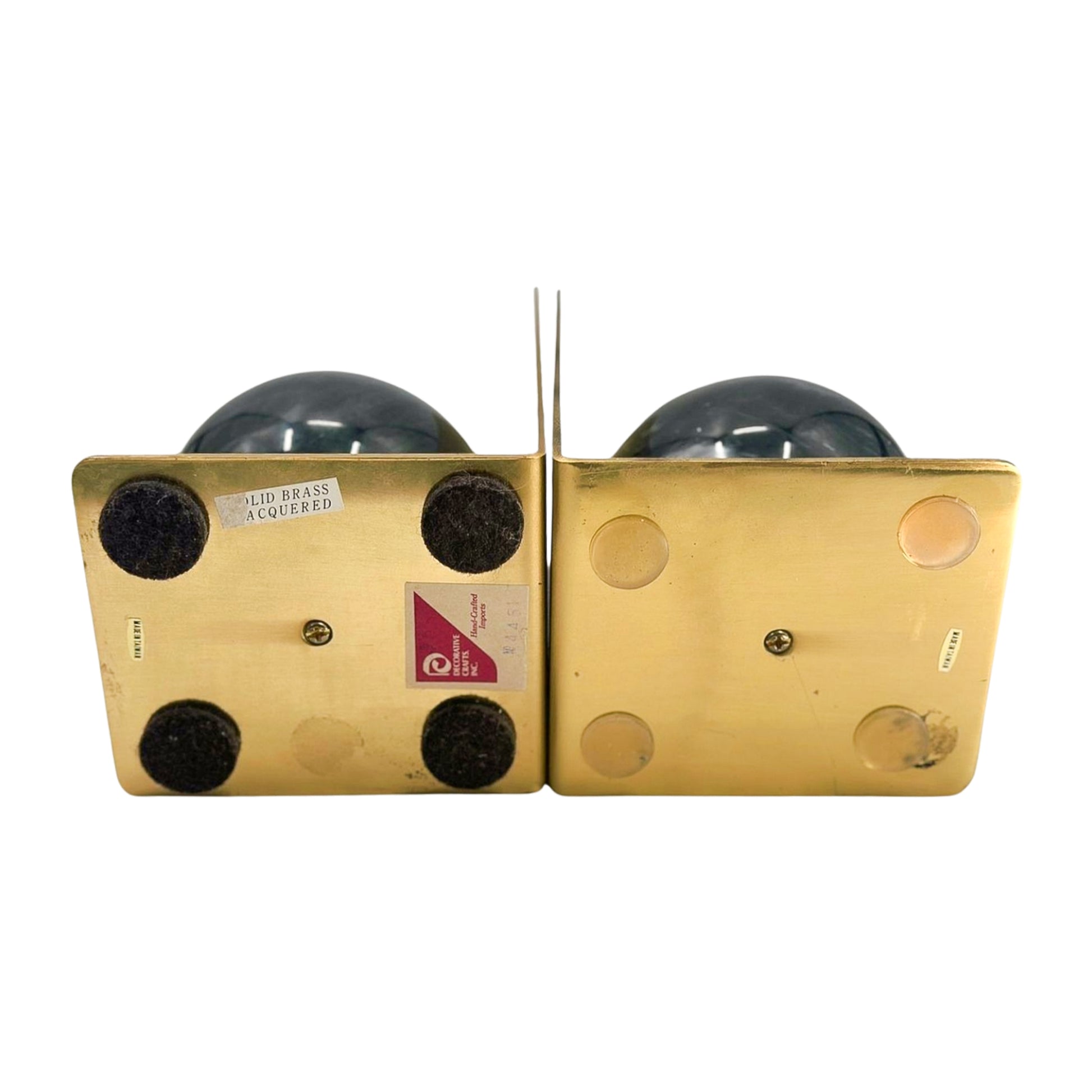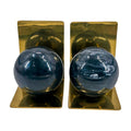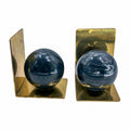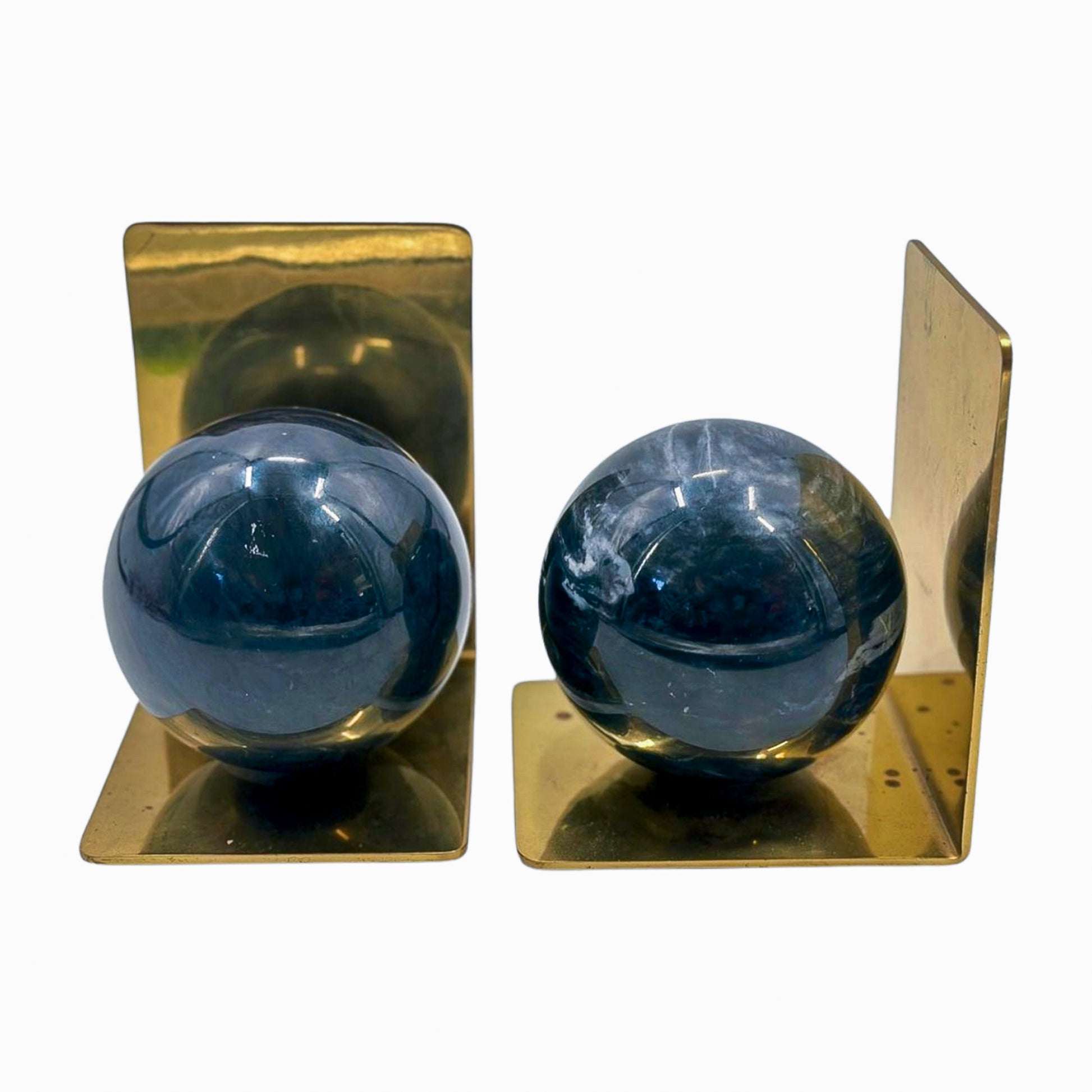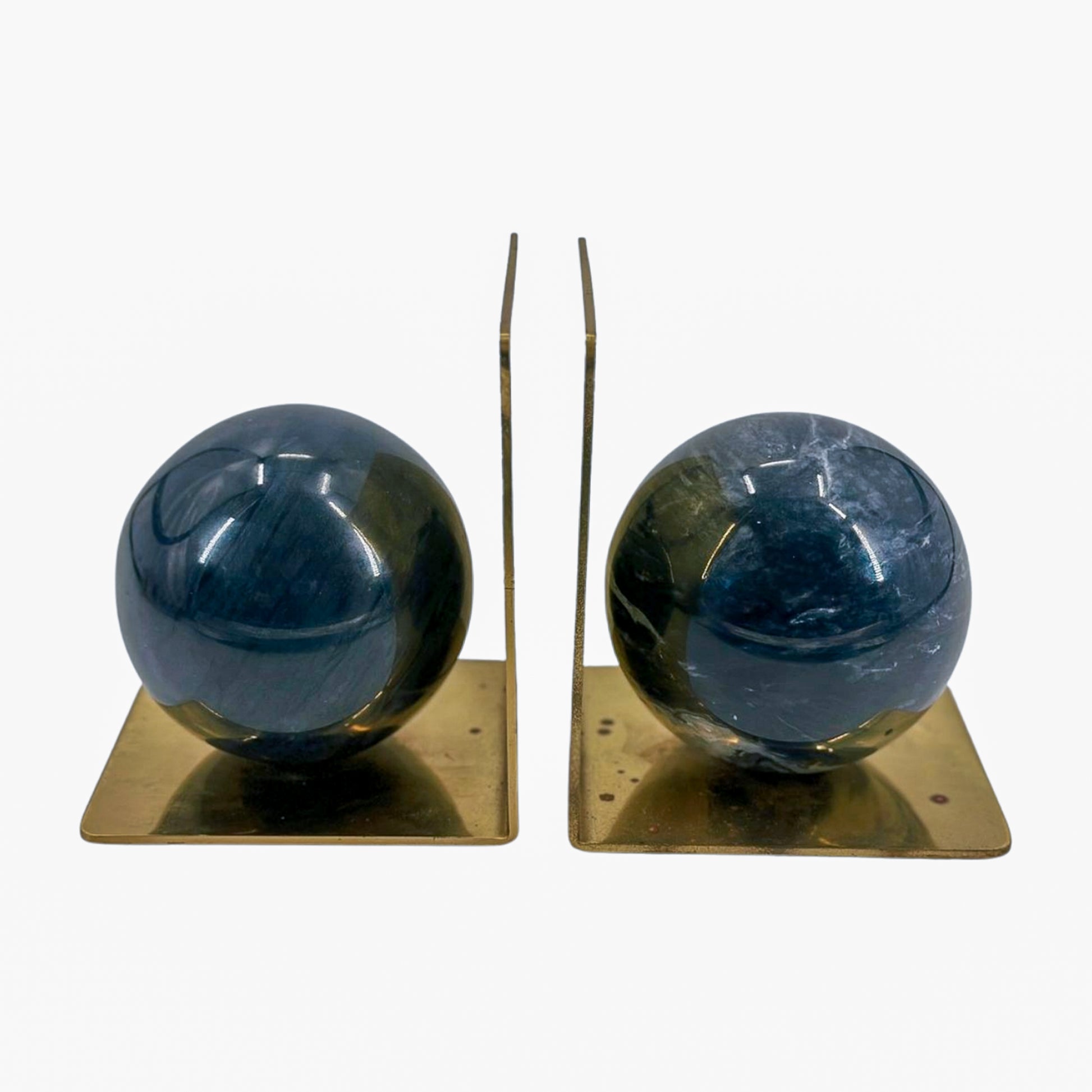 Sculptural, weighty, and confidently minimal. This pair of vintage bookends features polished brass L-brackets anchored by solid black marble spheres—deeply reflective with natural veining. The silhouette is clean and deliberate, adding structure and weight without fuss.