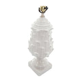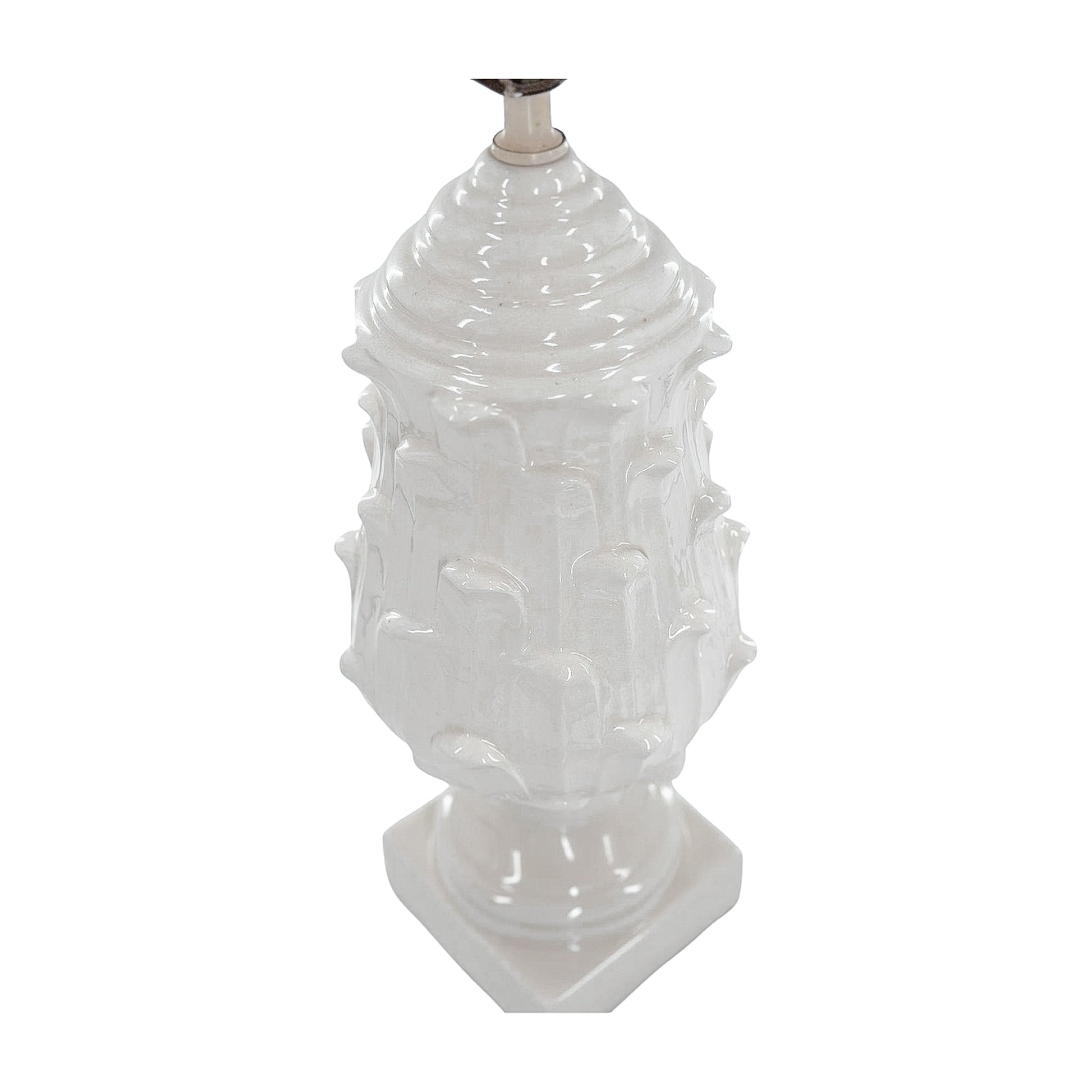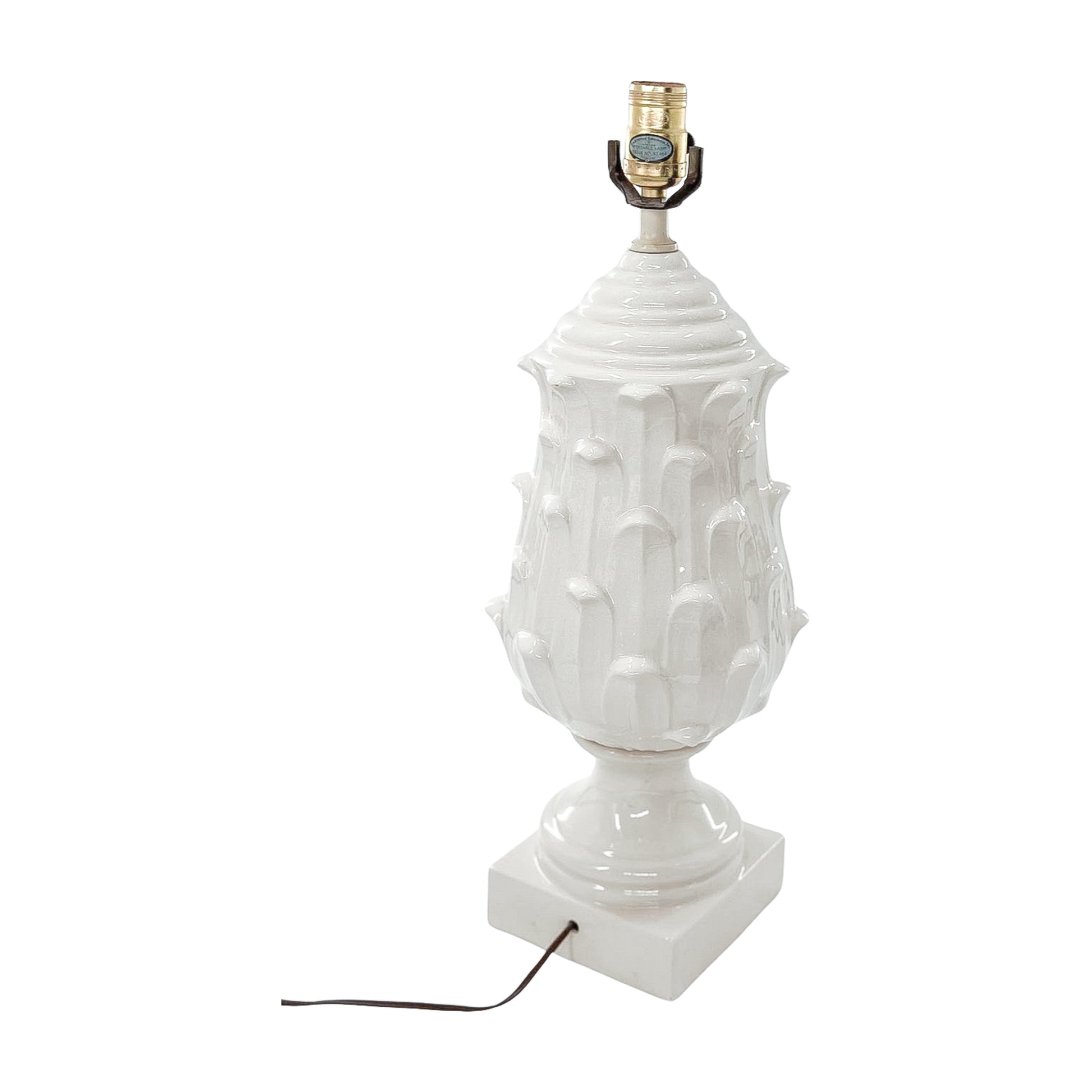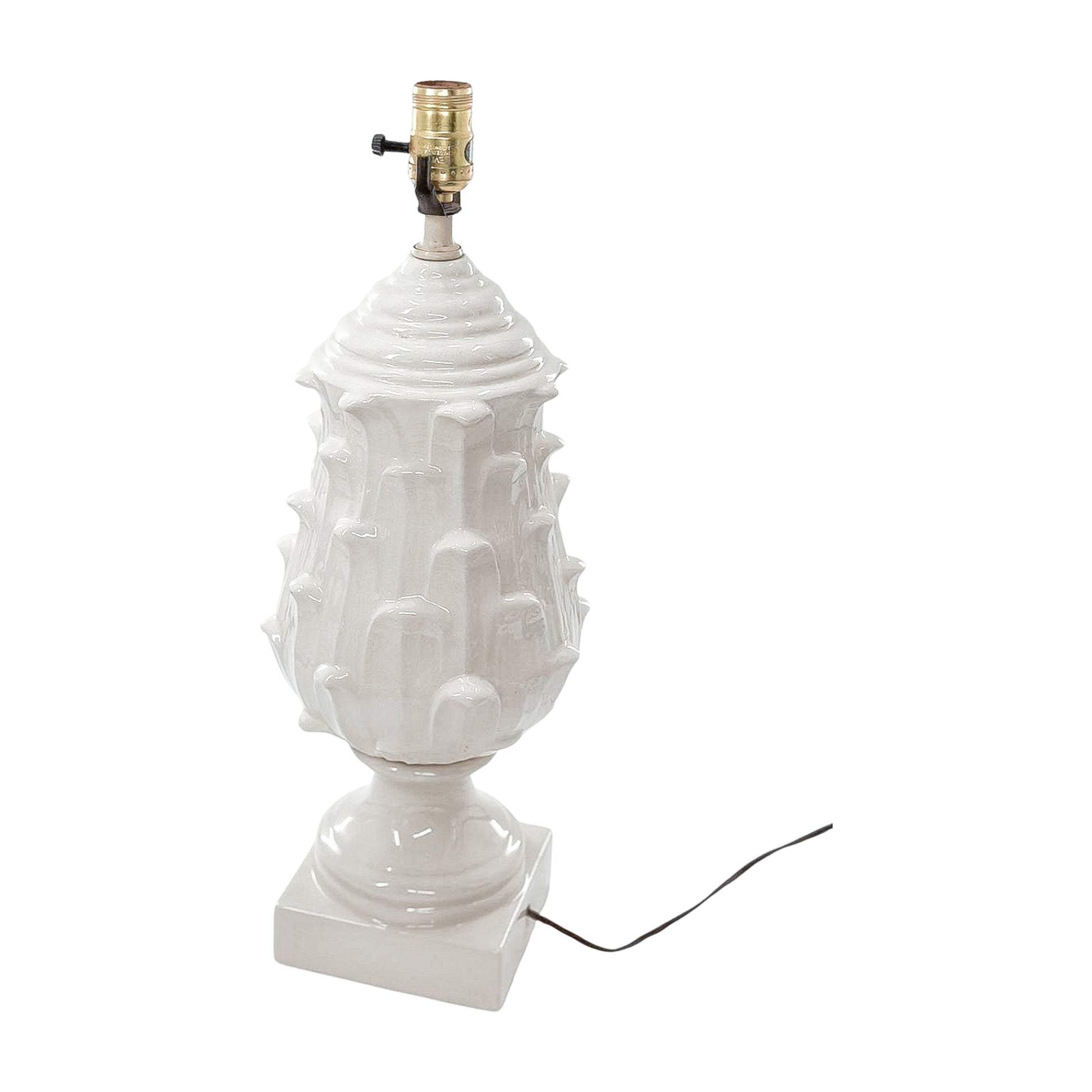 Bold texture meets soft shine. This glossy ceramic lamp features a sculptural artichoke-inspired body, flaring outward in petal-like ridges and perched on a square plinth base. All white, all attitude—and the kind of piece that makes even a corner feel intentional.